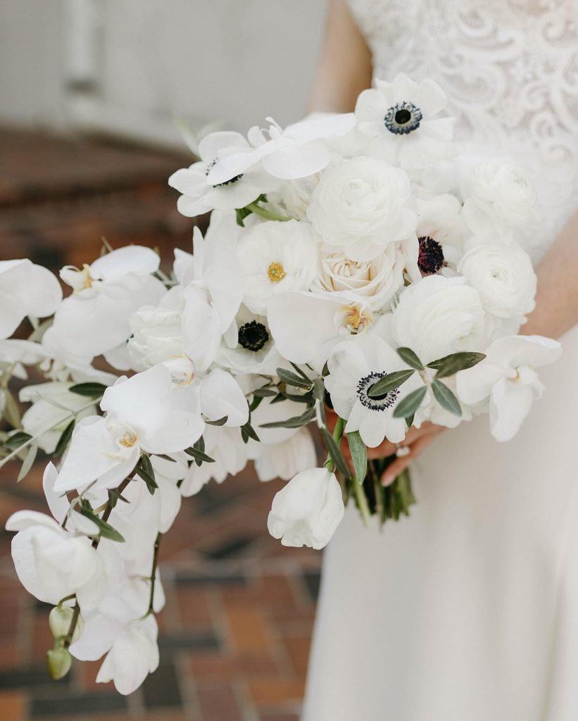 You can never go wrong with a classic anemone floral bouquet! New Leaf Florist complimented this delicate bloom with some greens which created the perfect bouquet for the stunning bride.
