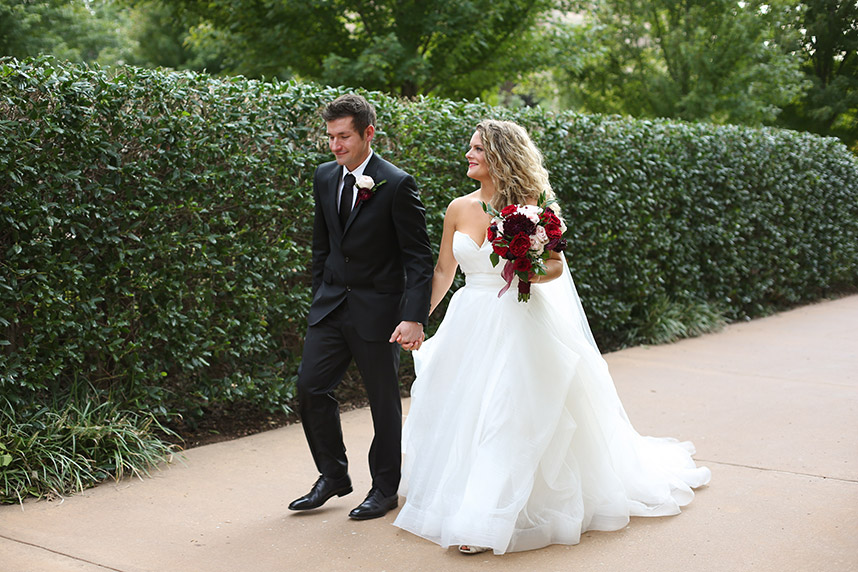 The couple was married October 1, 2016, on the Stanton L. Young Walk at the University of Oklahoma Health Sciences Center in Oklahoma City. As a student on the campus years earlier, Whitney had fallen in love with the fountain and gardens, and she knew that was where she wanted to get married. Family and friends gathered and jazz guitar played as Whitney walked down the aisle in her Hayley Paige gown. After the couple exchanged vows they had written themselves, the clock tower played “The Wedding March” during the recessional.