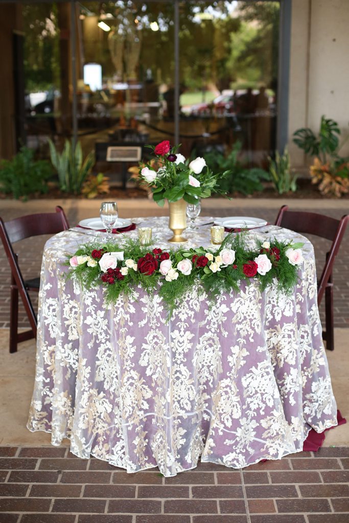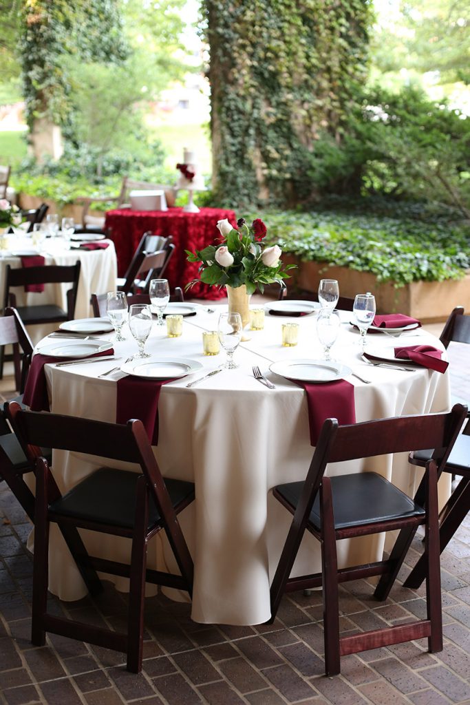 The celebration began with a champagne hour and hors d’oeuvres among the beautiful garden foliage as the sun was setting, and continued with dinner on the library patio. Whitney and Walter were seated at a sweetheart table where guests came by throughout the evening to give their congratulations. After dinner, the couple had their first dance – a waltz they had practiced for months – to Chris Stapleton’s “More of You.” Guests were then transported to the Ambassador Hotel for an after party. The couple and guests danced the night away.