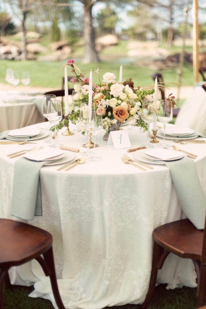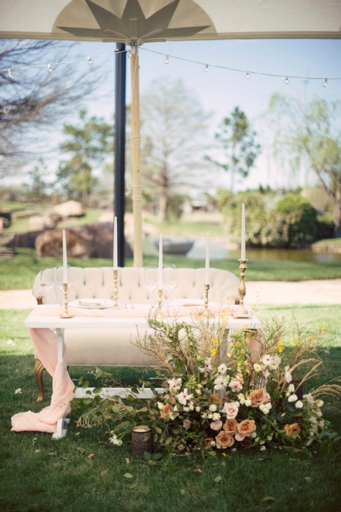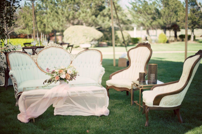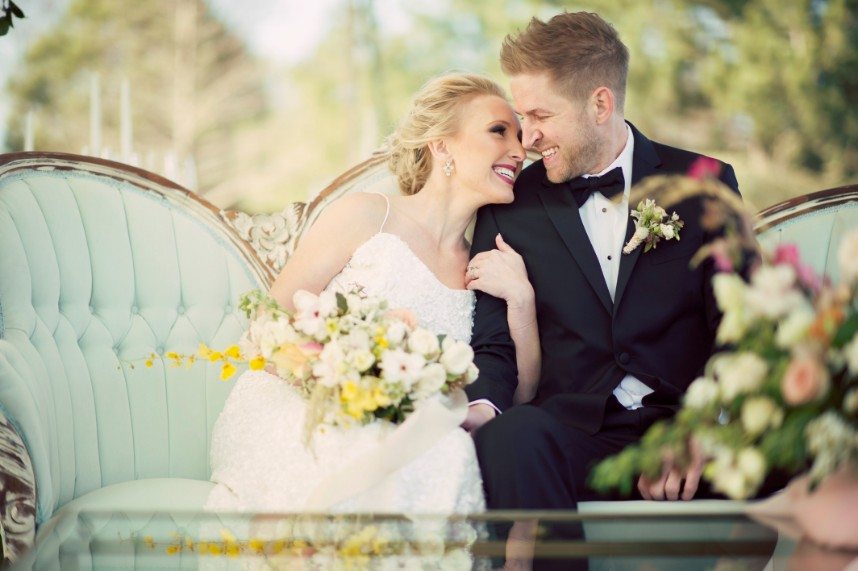 From the romantic table settings and antique dresser turned cake stand to the one-of-a-kind lounge furniture, this modern coastal inspiration shoot featuring Marianne’s Rentals Special Event Solutions gives us the feeling that we’re on the Nantucket beach! Stunningly styled by Aisle Be With You, this wedding inspiration showcases an exquisite invitation suite and handwritten vows from Celeste Paper Co. in seaside hues and golden touches and a collection of dreamy textured wedding cakes in feminine hues by Mishelle Handy Cakes. The florals created by Poppy Lane Design are an ideal blend of springtime blooms and are the perfect representation of vintage-inspired modern style that you’d see on the East Coast. Not to be outdone, the bride looks flawless in her sequined gown from Chantilly Couture with beauty by Lexi Faught Hair & Makeup. Seeing the couple wander around the tented grounds at Coles Garden looking so in love is giving us all the feels!