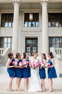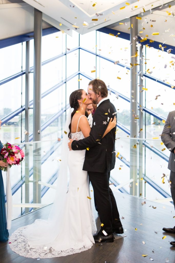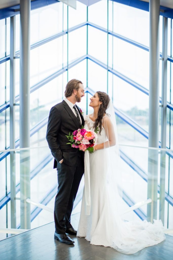 Tammy Odell Photography captured Madison and Zane’s colorful nautical wedding in downtown OKC, and we are big fans! Kadi Uhack Makeup gave the bride a beautiful natural glow, and The Medieval Garden Floral decorated the modern boathouse venue with bright blooms that gave the space pretty pops of color. Enjoy!