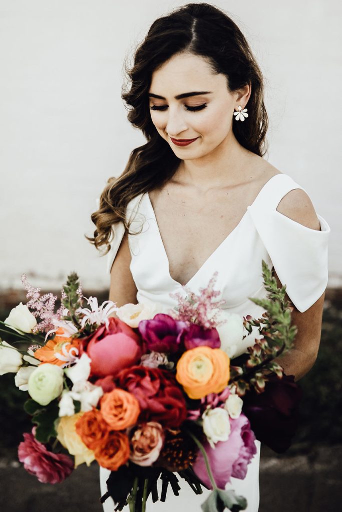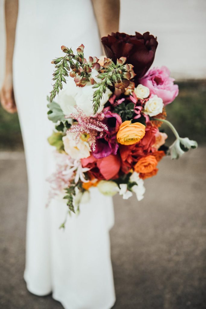 To set their wedding apart from current trends, they planned a wedding that had as much color as possible. Despite a few color-matching challenges, they persevered and the results are immortalized for all time.