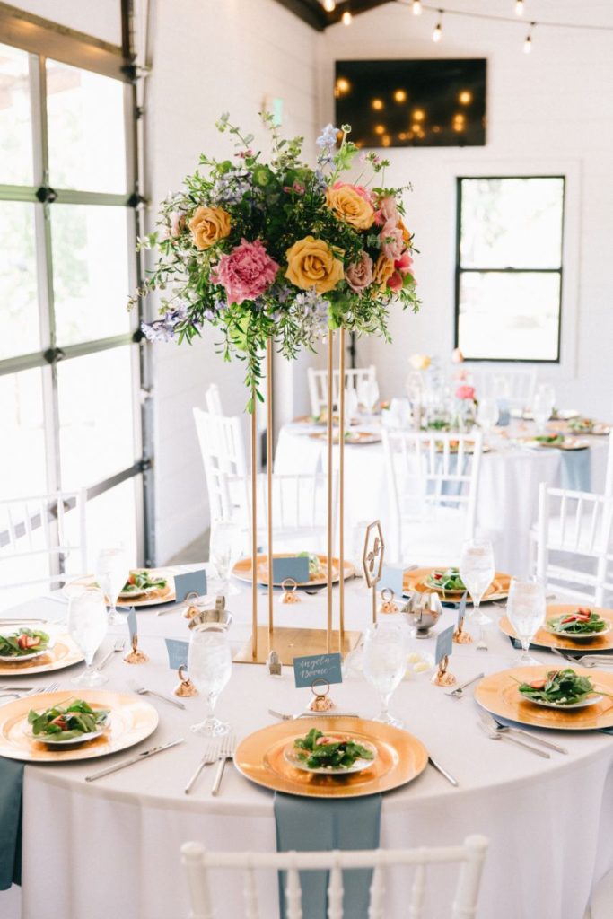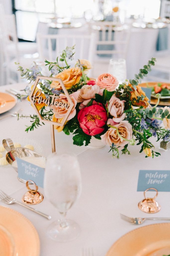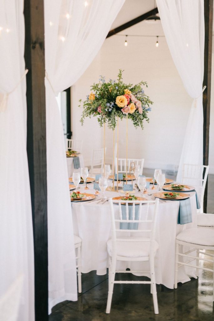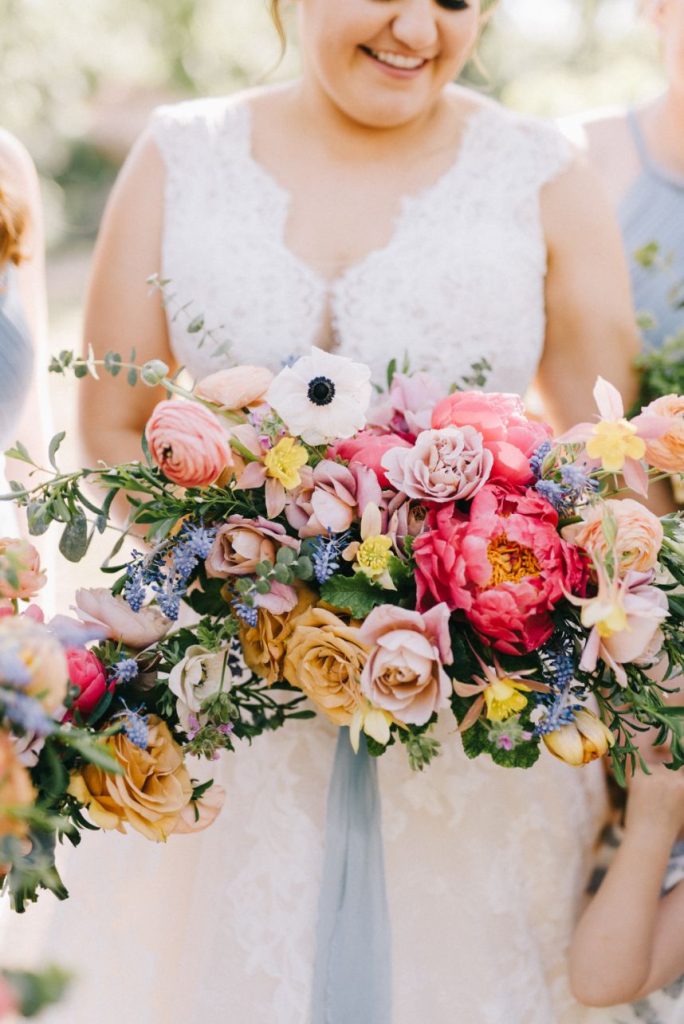 Held at Dream Point Ranch, Rebecca Bonsall and Eric Stephen’s stunning colorful rustic wedding is far from overwhelming in its palette! The subtle way that so much color is introduced into this ranch lodge venue makes everything seem perfectly in place. Party Pro Rents makes decorating easier and finding the perfect rentals for your wedding a breeze. We love the elements they added to Rebecca and Eric’s big day – from gorgeous tablescapes lined with greenery to geometric table numbers that add a modern touch. The combination of all the colors in this palette and everything else about this colorful rustic wedding is so fun, and all flawlessly captured by Josh McCullock Photography. Cheers to Rebecca and Eric!