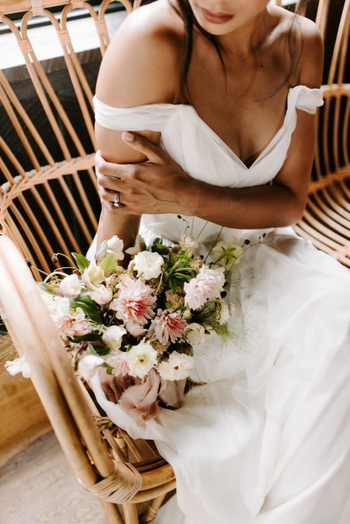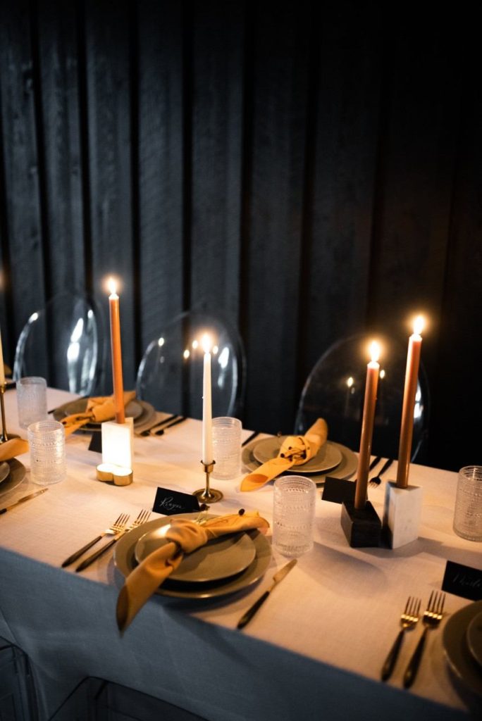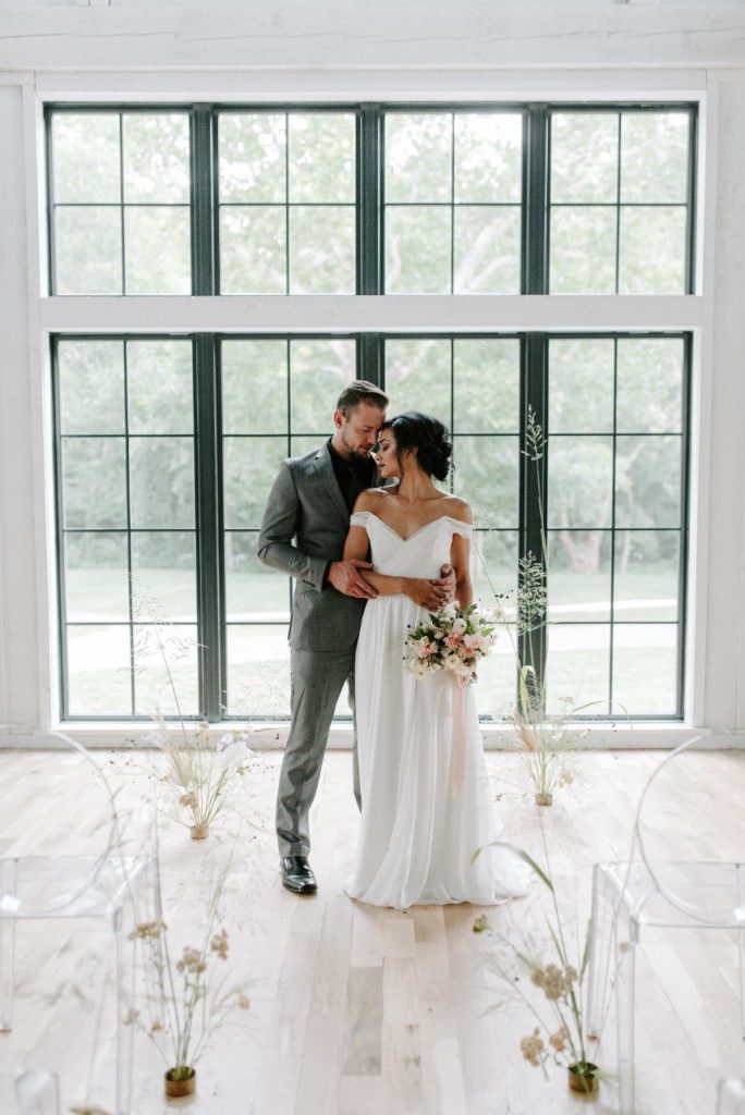 We’re still picking our jaws up off the floor after scrolling through these delightful images – this contemporary ethereal wedding inspo from Ivory Rose Event Co. is EVERYTHING! Lauren from The Ivory Rose specializes in planning and designing modern, artful, unique and alluring weddings, and her style and expertise is completely evident in this inspirational shoot. She partnered with top Tulsa vendors to bring this vision to life, with none other than The Black Barn at Spain Ranch offering the most perfect backdrop. Anthousai‘s florals always impress, and in this setting, they not only added life and spunk but set the tone with uncommon blooms in unique arrangements inspiring us to think outside the box when it comes to wedding florals. Anything is possible! A dark and intimate candlelit dinner showcased textures galore, from the linens to the cake, and rentals from Party Pro Rents, including the acrylic accents and ghost chairs for the indoor ceremony, flowed cohesively with the aesthetic. A contemporary ethereal off-the-shoulder dress and chic updo with tendrils left loose let the bride’s natural beauty shine. Warm neutral tones along with modern, unexpected touches make this inspirational scene unforgettable! Enjoy scrolling through the beautiful images below!