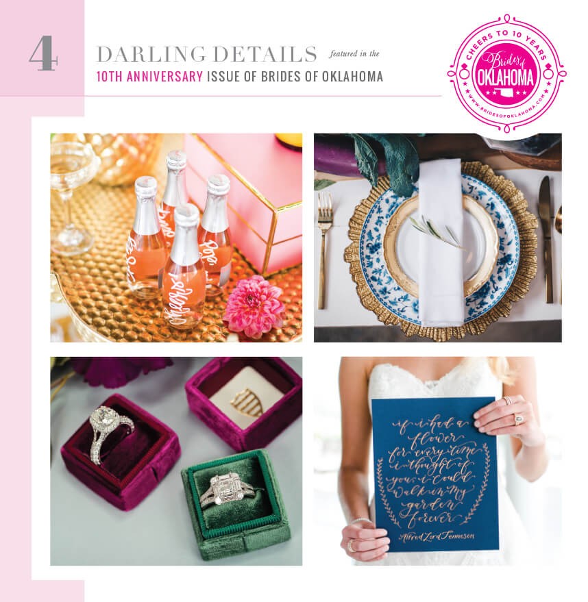 As the countdown to the 10th Anniversary issue cover reveal continues, we’re excited to share a few more sneak peeks from the all-new Spring/Summer 2017 issue! We always love to see what personal touches brides put into their big day, and you’ll find tons of these fabulous details throughout the glossies. Enjoy these four darling details, and as you’re flipping through the pages of the new mag be sure to flag your own favorites to incorporate into your wedding!