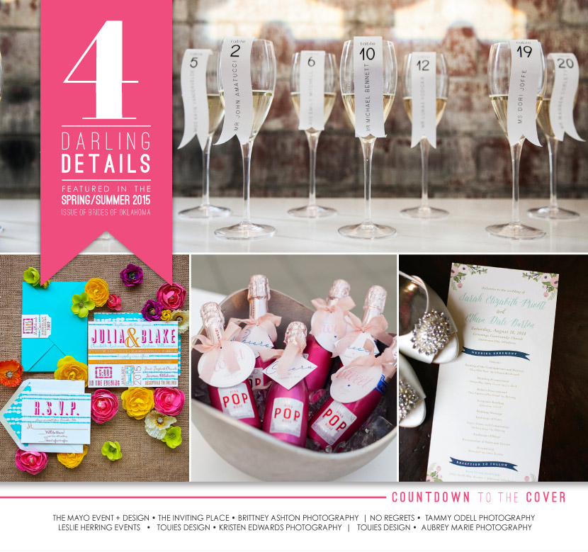 We can hardly wait to reveal our new cover bride next week…not to mention an additional surprise! We’re wrapping up the week with four sneak peeks of darling details you’ll find in the new issue! We love all the personal touches brides work into their big day and you’ll find tons of these fabulous details throughout the magazine! As you’re flipping through the pages, be sure to flag your favorite details to incorporate into your own wedding!