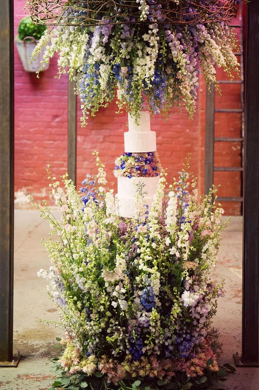 Call attention to your cake with an incredible cake display. Tony Foss Flowers wowed us again with this stunning design!