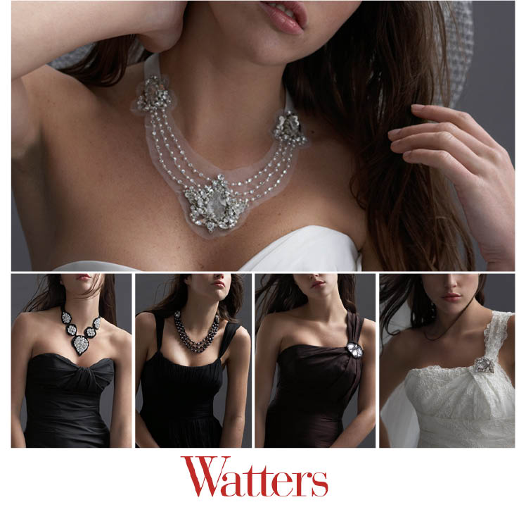This adorable jewelry collection from Watters gives a little hint of sparkle and glam and is the perfect match to any gown. We just love these charming brooches to dress up any bridesmaid’s dress or change looks with your wedding gown before the reception! The combination of crystals and pearls gives a classy chic look to any dress! The necklaces are crystal encrusted satin with English net ties and look dazzling on everyone! Find these creative touches that add a little zing to your special day at J.J. Kelly Bridal Salon in Oklahoma City. Ciao!