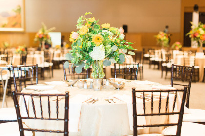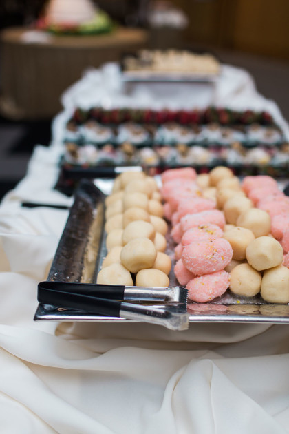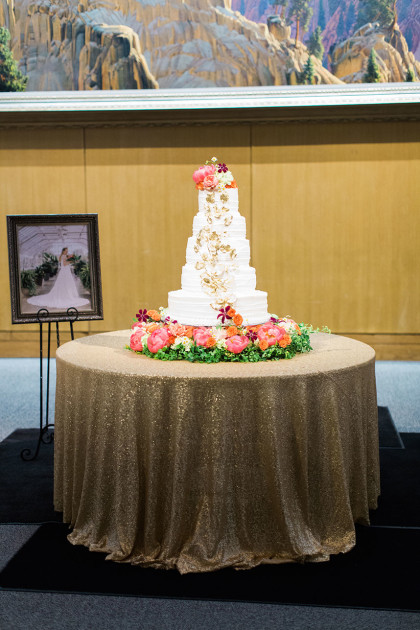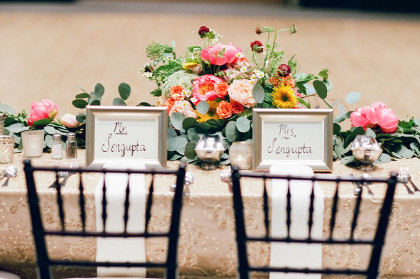 In the light of western cultures, the stunning bride walked down the aisle in a Justin Alexander princess-cut, delicately laced ball gown, accented with a vibrant floral crown bestowed upon her head. Stephanie wore an astounding pair of diamond and pearl dangle earrings and a gold bangle given to her by the grandmother of the groom. The glowing bride gracefully carried a bouquet arrangement done by Birdie Blooms, bringing life and radiance into the wedding.