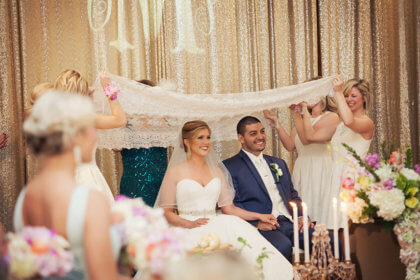 The couple was married on May 9, 2015. Their wedding day was predicted to be the worst weather day of the year, so while they planned to marry in the Bicentennial Park, Caitlin and Phillip made the tough call to keep guests safe and move things indoors to the Civic Center’s Meinders Hall of Mirrors. The bride and groom wanted to make the ceremony their own and did so by incorporating both of their cultures. The Highlanders played “Highland Cathedral” as the bride walked down the aisle. An Irish Wedding Bell was presented to the couple that they rang together after reciting their vows. Then the couple honored Phillip’s Persian culture with a traditional Persian ceremony as they sat in front of the Sofreh-ye Aghd, an elaborate spread filled with meaning and tradition for the pair to carry forward in their marriage. The wedding wouldn’t have been complete without Caitlin’s grandmother reading an Irish prayer, and Phillip’s Colombian grandfather blessing the couple.