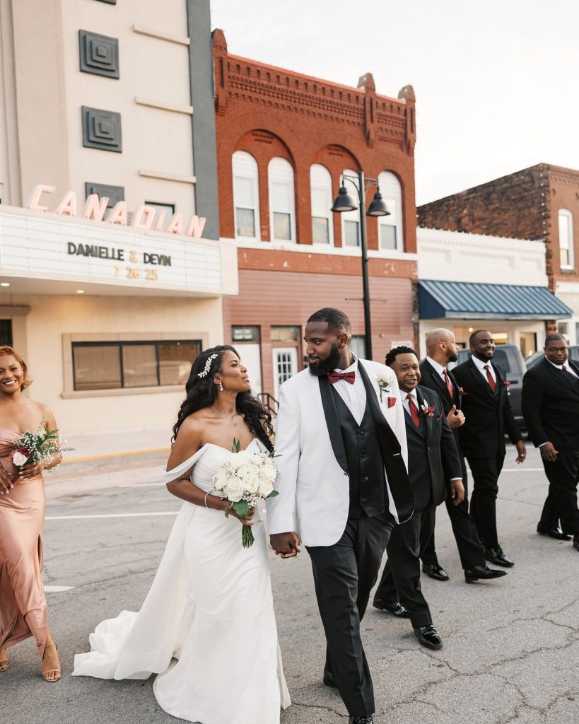 NOW PLAYING: Danielle & Devin’s Grand Wedding! These two tied the knot at a stunning venue just 30 mins of OKC, The Grand Canadian Theater. The elegant venue was perfect for their celebration!