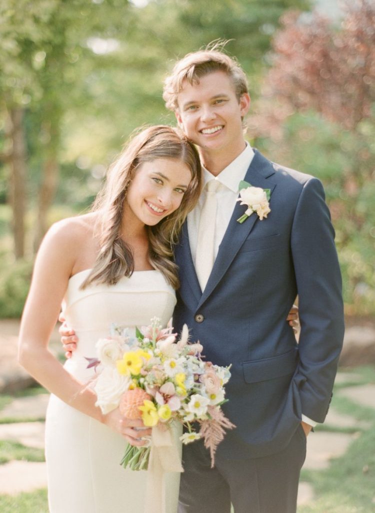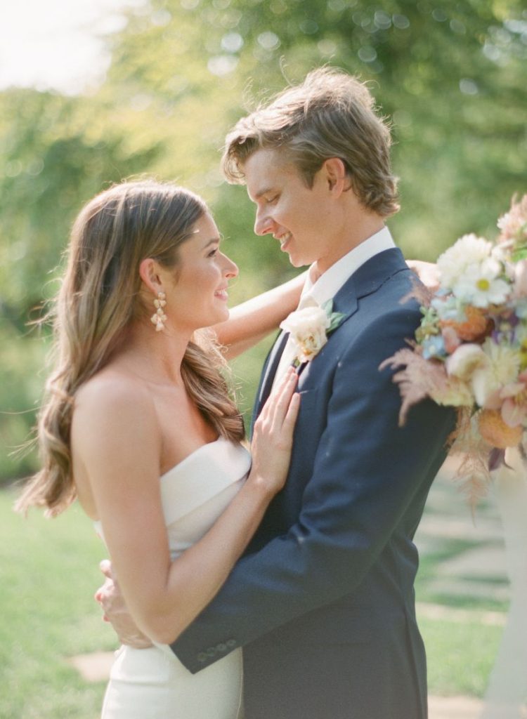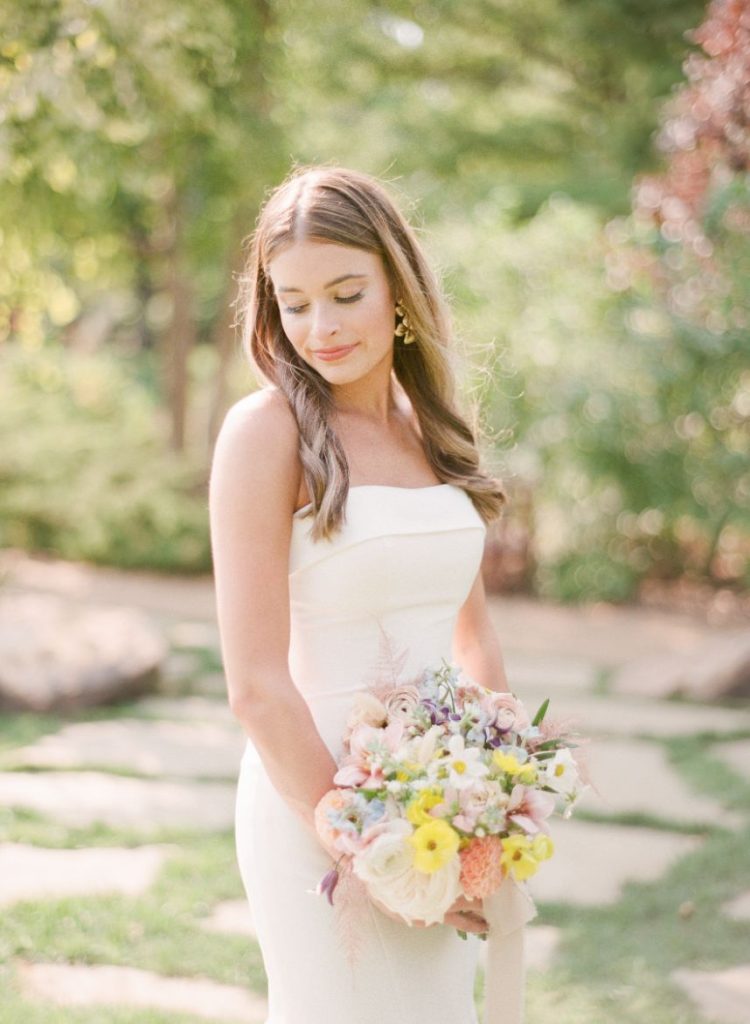 Along with all of the summer floral beauty, it is definitely not hard to recognize our bride Lauren’s beauty as well. She looked stunning in an elegant and simple strapless gown with a natural makeup look from Chelsey Ann Artistry. Lauren glowed as she walked down the aisle to meet Kade at the altar. After the couple became husband and wife, guests celebrated with food, music, and of course, a cake from Amy Cakes. Amanda Watson Photography captured the happiness between the couple as they became the new Mr. and Mrs. Scott. We know that Lauren and Kade will cherish all the images that the talented Amanda Watson captured for years to come. Keep scrolling to see all the dazzling summer florals and images of pure happiness in Lauren and Kade’s garden party wedding.