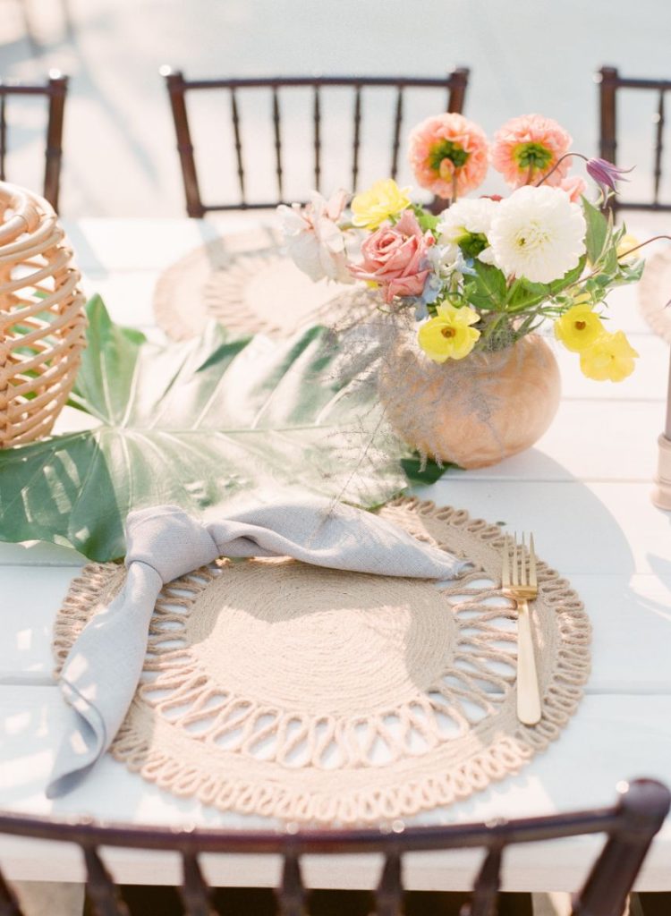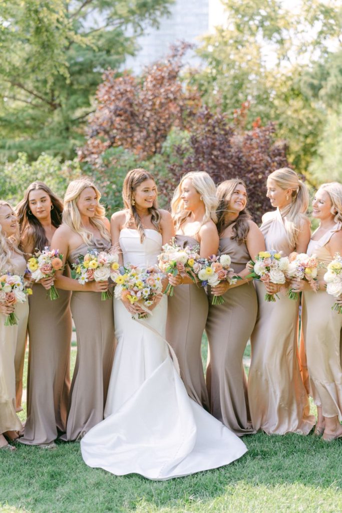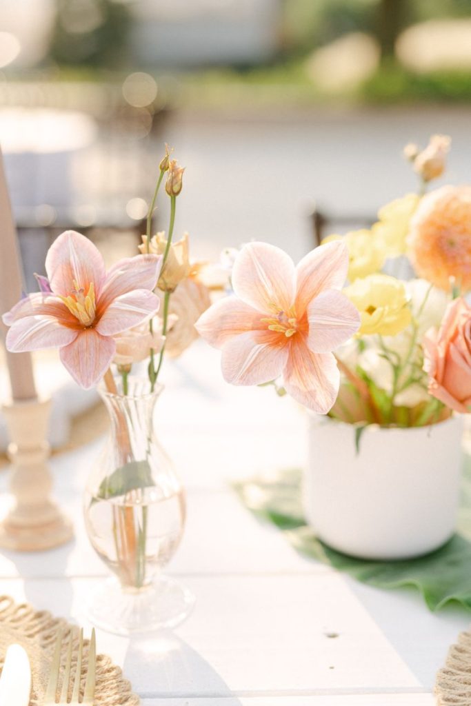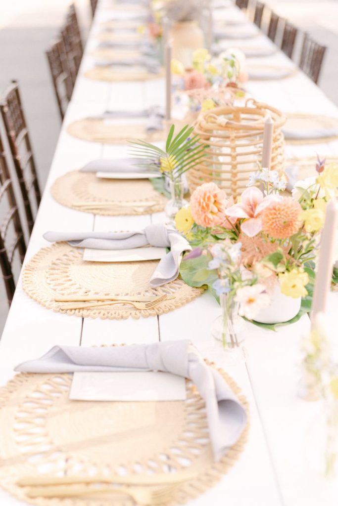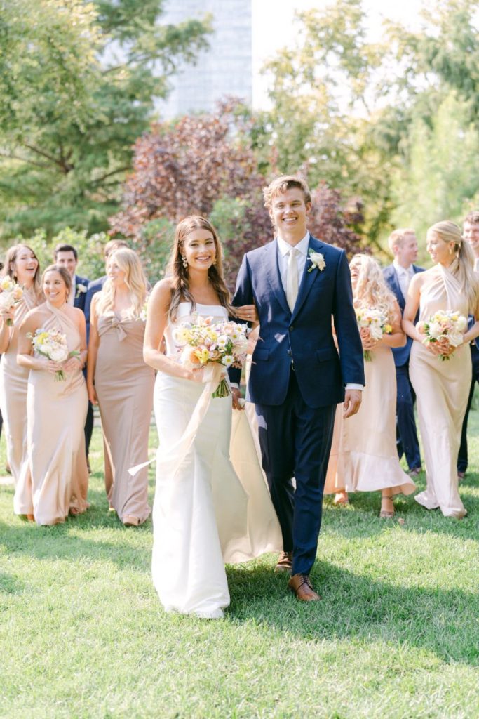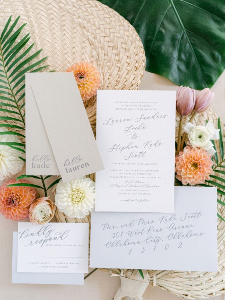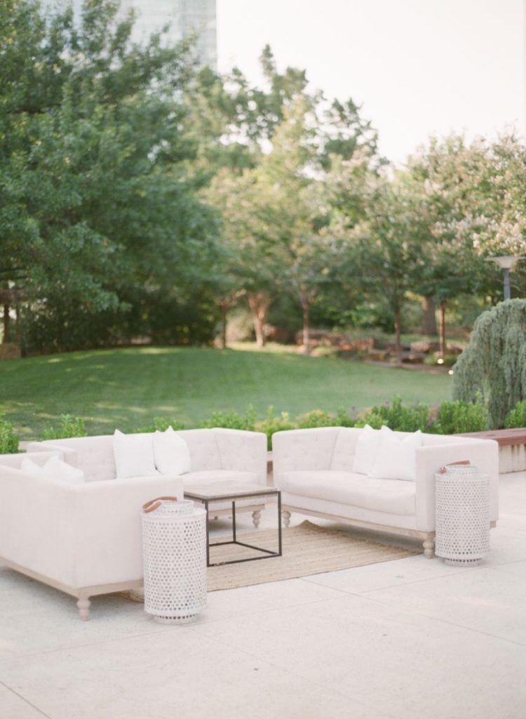 If you’re looking for summer floral inspiration, you have come to the right place! The dazzling summer florals in Lauren and Kade’s downtown garden party wedding are absolutely breathtaking. Lauren and Kade said, “I do” in the Myriad Botanical Gardens on a warm summer evening. Invitation suites from Eros Studios invited guests to watch the sweet couple become husband and wife underneath the downtown lights of OKC. Fête helped the couple plan their magical downtown garden party wedding that truly has us dreaming of warm summer nights. From start to finish, XO by Haleigh Kenney created pops of bright summer florals throughout the evening. Every detail of the wedding included a bright summer floral pop that we can’t get enough of. We love how these summer florals paired so well with the neutral decor and rentals from Mood Party. A neutral lounge scene and table settings allowed the summer florals to make their statement.