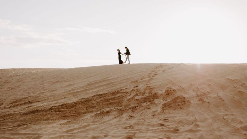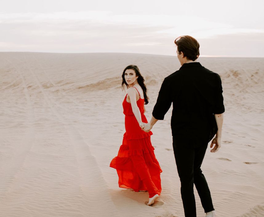 Captured by Katie Hadley Photography, this Oklahoma engagement session’s desert setting makes it feel oh-so-editorial, and it helps that these newlyweds look like models! Heather and Terran’s story began when they first met in college. Heather was competing in the university pageant when Terran saw her from the audience and pointed her out to his friends promising that he would marry her as soon as he saw her – it only took meeting followed by a year of friendship before he let her in on this little secret, though! Terran kept his promise, proposing just two days after their college graduation on a family vacation to Disney World. Now, they are married! Mr. and Mrs. English tied the knot in an intimate October ceremony with 75 of their closest friends and family members at The Golf Club of Oklahoma in Broken Arrow. They stuck to a color palette of classic black and white and incorporated a theme of Old Hollywood style into their big day. If it’s anywhere near as effortless and chic as their desert engagement session, we can’t wait to take in all the tasteful details! Read on to hear more from the bride about how he proposed. Cheers to Heather and Terran!