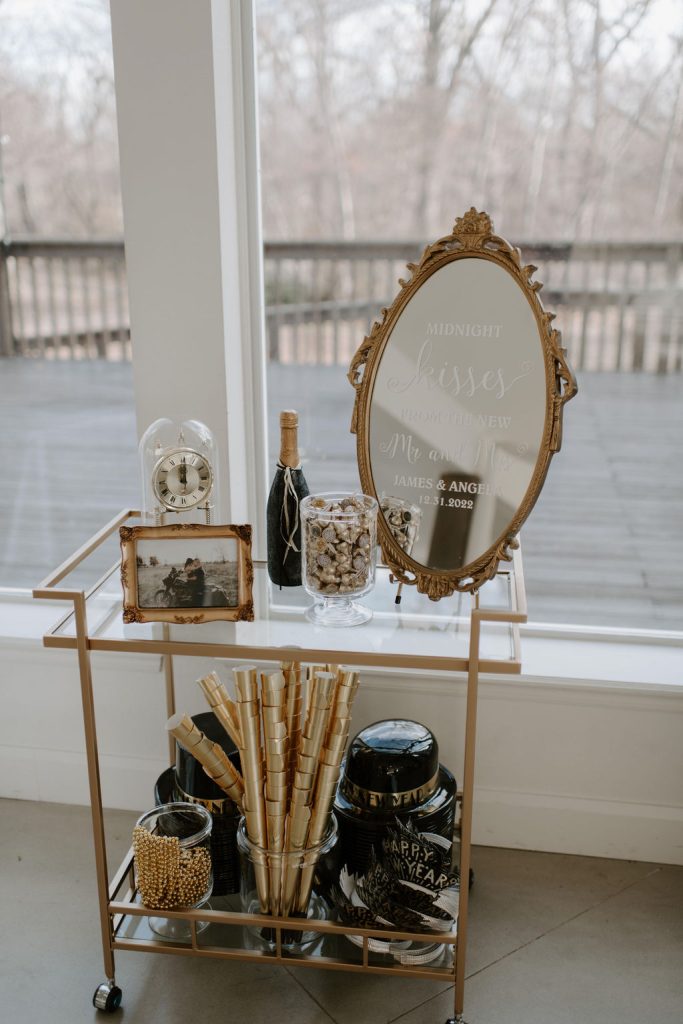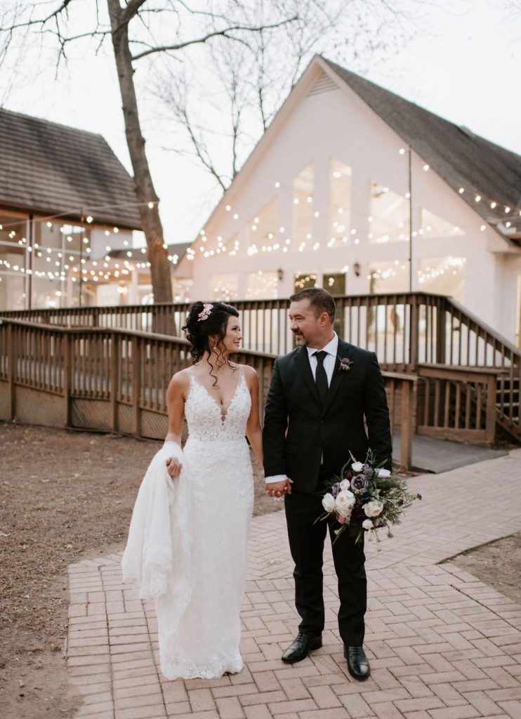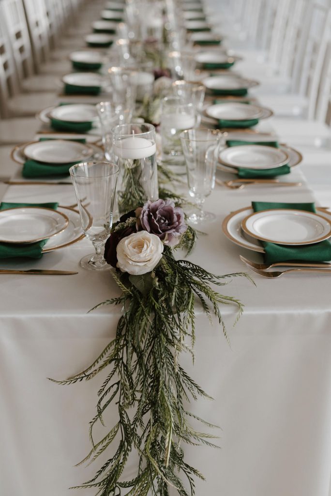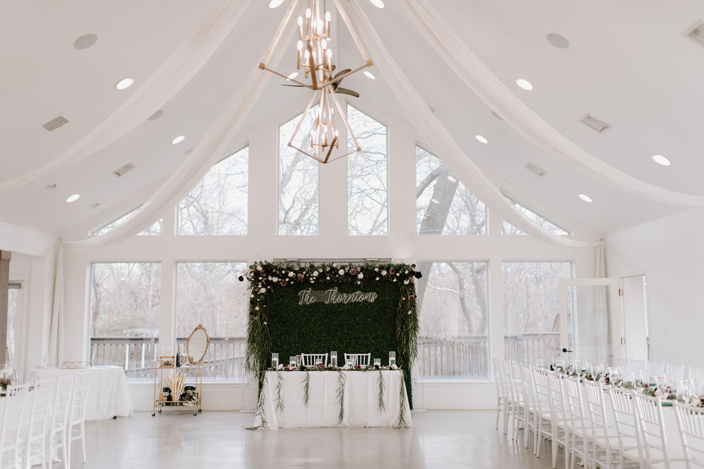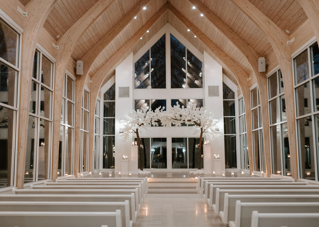 This dreamy December wedding was as romantic as they come. The Glass Chapel ceremony space was illuminated with soft candles and the altar had stunning white leafed trees!