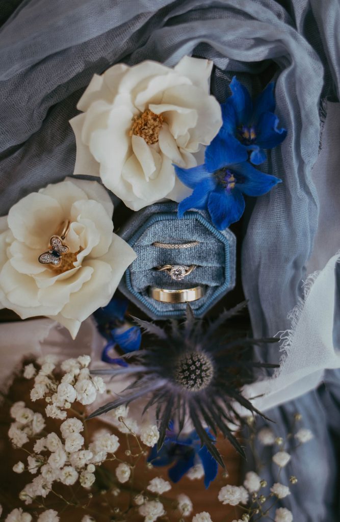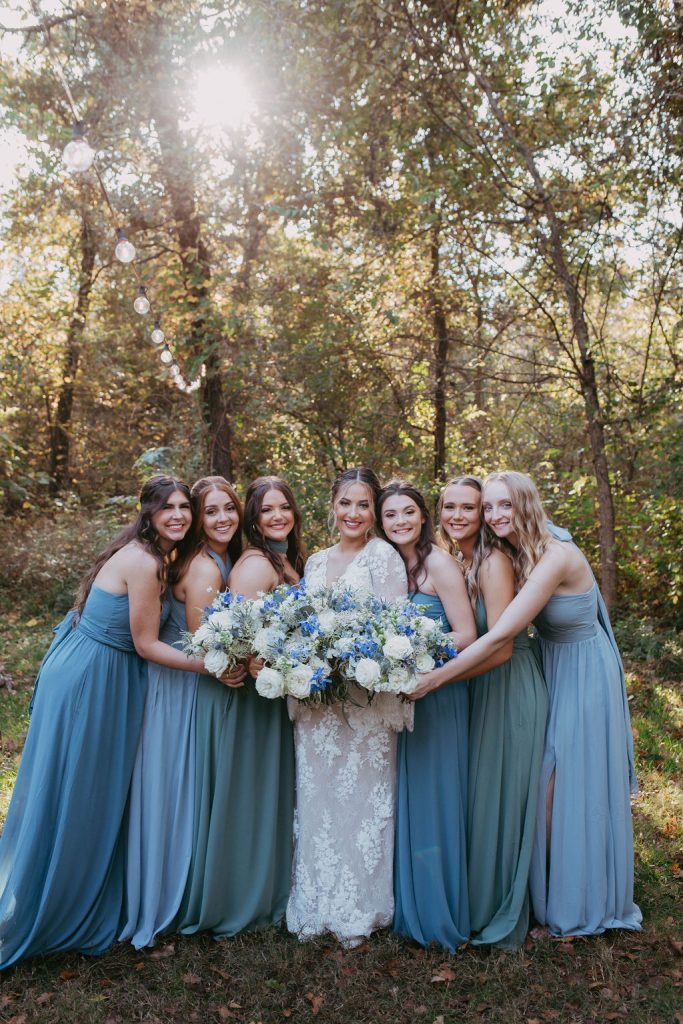 Marleigh & Caleb’s wedding day was accented with pops of blue and embellished with lush florals. The couple incorporated details that showed off their personalities and we couldn’t be more obsessed! Congrats to the Shirtums!