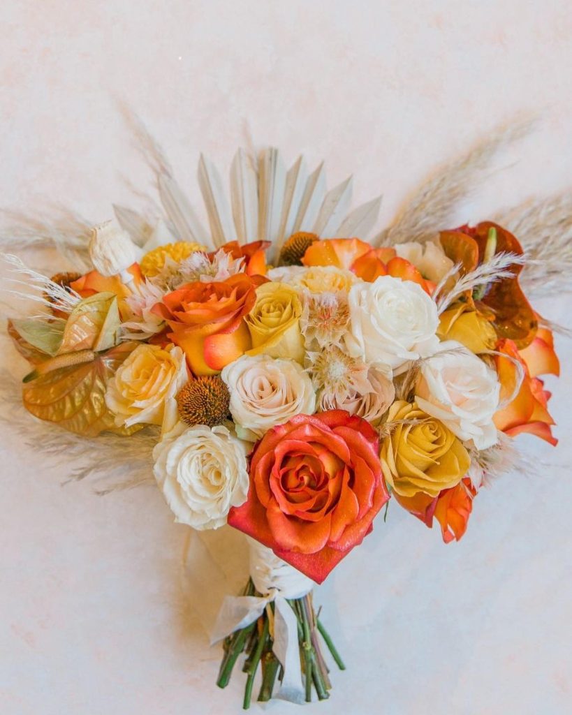 Eclectic Orange Florals Brighten Up This Boho Warehouse Wedding