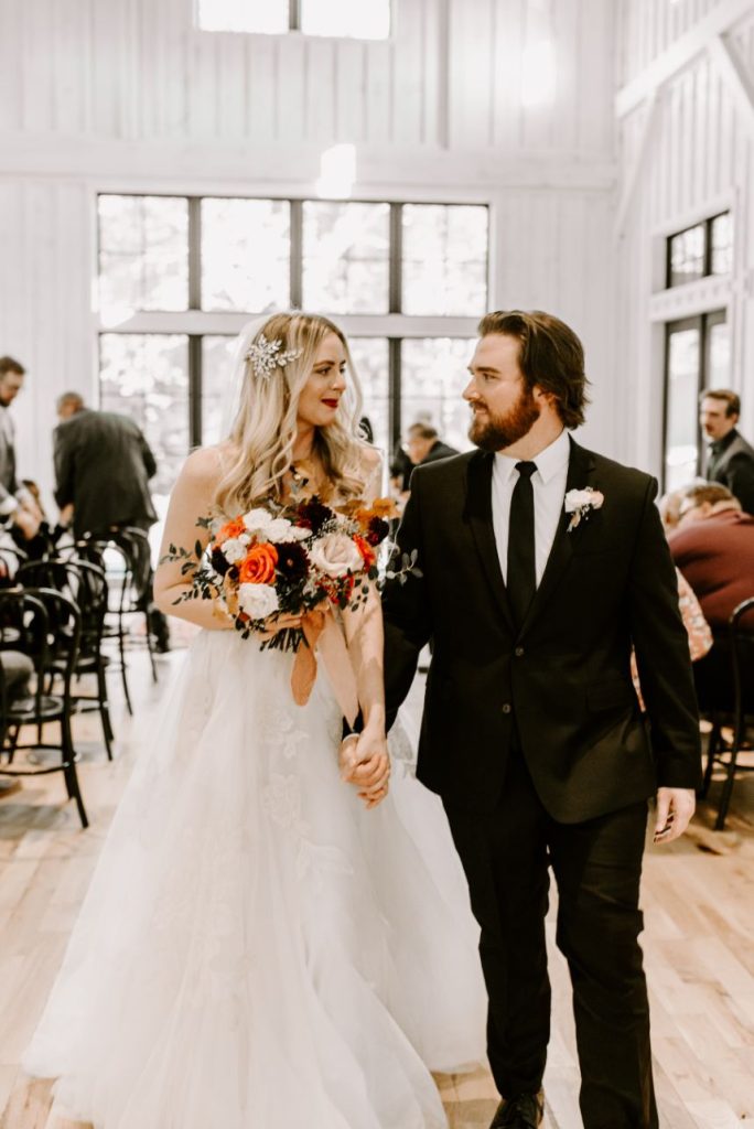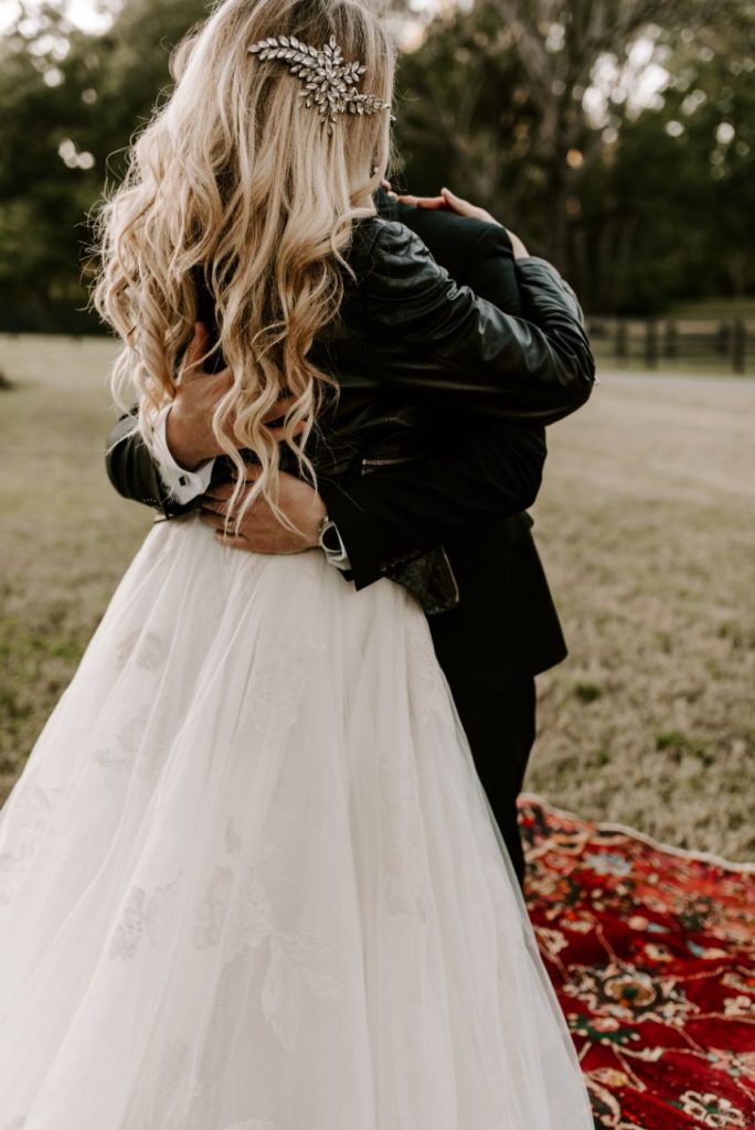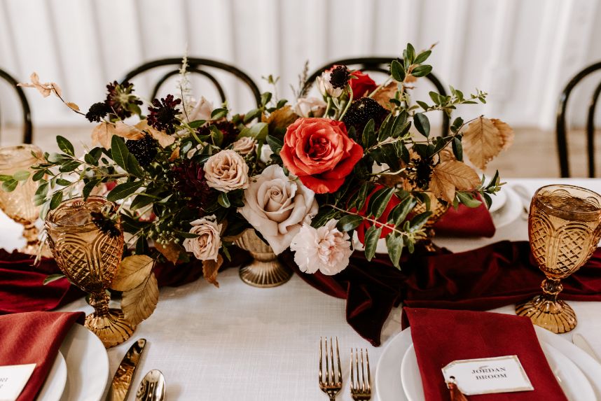 Held at The Black Barn at Spain Ranch, Rachel and Joel’s intimate fall wedding is absolutely filled with romance – from the color palette down to the amazing, autumnal floral design. The team at Ever Something outdid themselves with the beautiful blooms incorporated into this big day, and we love the way they complement the same edgy, romantic theme carried throughout boho decor and rentals from Party Pro Rents. The culinary masters at Justin Thompson Catering got the memo that good food was important to these newlyweds and their wedding guests, so they opted for a breakfast for dinner served buffet-style, complete with an omelet bar and local Topeca Coffee. Yum! This entire elegant affair was captured flawlessly by Chelsea Littleton Photography, making us feel like we were in attendance at this edgy fall wedding! Read on for a note from the bride about her favorite wedding day memory. Cheers to Rachel and Joel!
