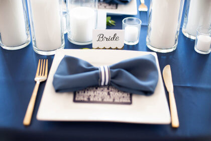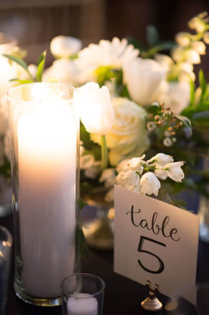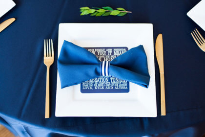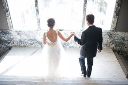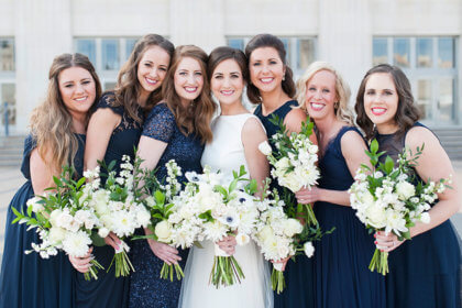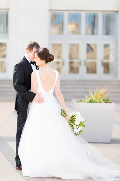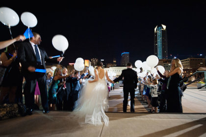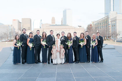 After the intimate ceremony, guests enjoyed cocktails, hors d’oeuvres and dinner catered by Abbey Road Catering. Guests danced the night away to a live band while overlooking the downtown Oklahoma City skyline from the Civic Center’s Meinders Hall of Mirrors.