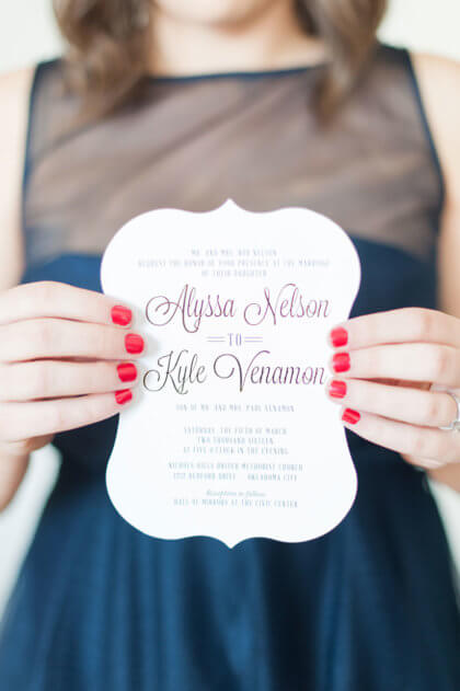 On March 5, 2016, Alyssa Marie Nelson married Kyle Brian Venamon at Nichols Hills United Methodist Church in Nichols Hills. The bride’s father escorted his only daughter down the aisle in a classic, low-back gown from JJ Kelly Bridal Salon. The bridesmaids wore long, navy gowns, each dress reflecting their individual personalities, and the matron-of-honor in sparkling sequins. The couple said, “I do,” surrounded by their cherished family and friends.