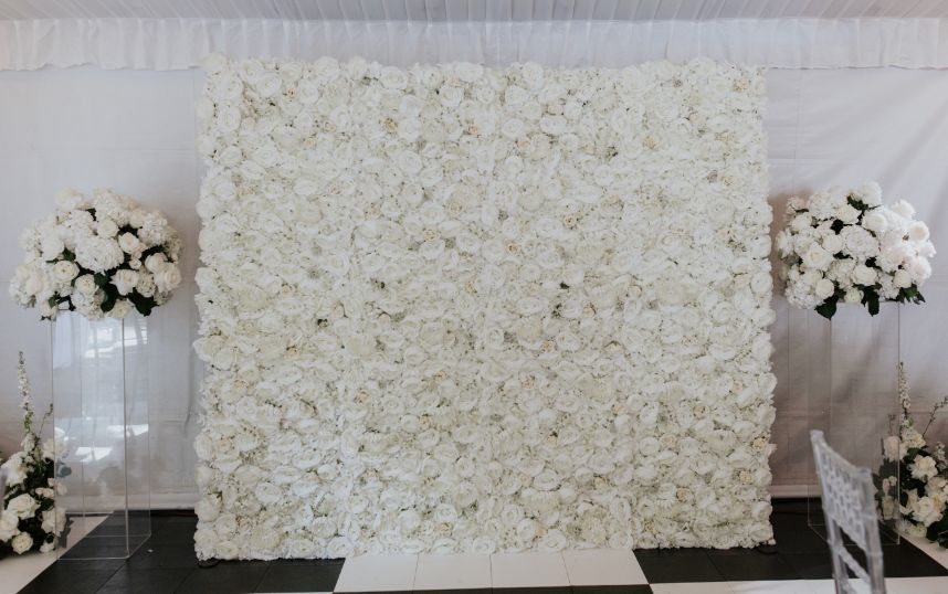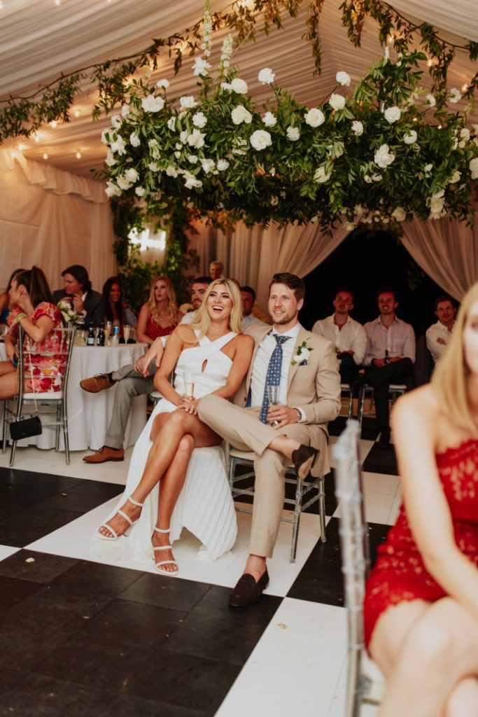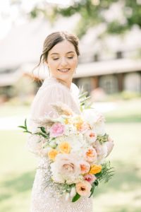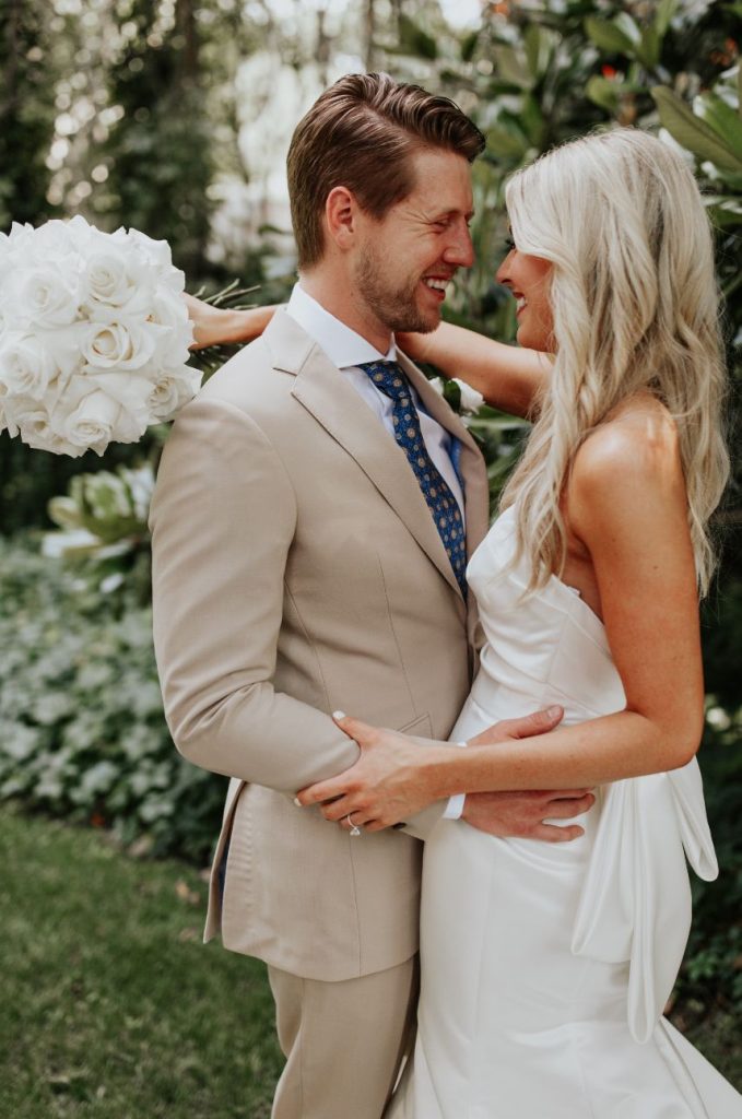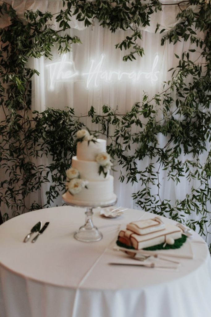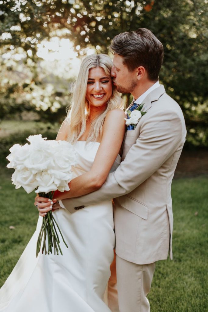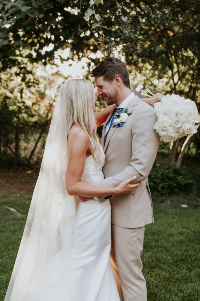 Ally and Jeremy celebrated their big day with an elegant yet modern themed wedding! With the pandemic making planning difficult, they decided to put a tent in Ally’s parents’ backyard, and it turned out to be such a beautiful and special setting for the two to say “I do”! Ally’s mermaid style dress from J.J. Kelly Bridal Salon was so classy and elegant and featured a fun bow detail on the back! We are obsessed with the black and white checkered floor, and a white floral wall served as a gorgeous backdrop for the couple as they tied the knot! KGC Photography captured the couple’s day in such a memorable and timeless way! The simple white three-tiered cake with soft white floral detailing from Amy Cakes was the perfect sweet finish to the night! Cheers to Ally and Jeremy!