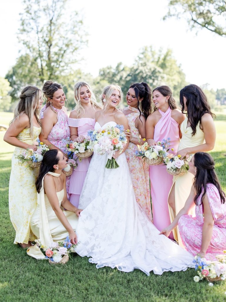 Ella & Cody’s elegant garden party wedding was picture-perfect! The bride shared, “Our wedding day was truly the most incredible day of our lives! Every moment felt magical from getting ready with all my closest friends while playing Mahjong to the most unforgettable dance party. I loved seeing my bridesmaids’ mix-and-match dresses come to life, beautifully paired with their stunning baskets. Every bit of the day was filled with joy and love, especially being surrounded by the people who mean the most to us. God’s presence was so evident throughout it all, making the day truly unforgettable.”
