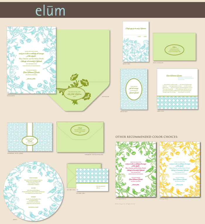 One of the invitation lines that we adore is Elum. You may have seen them associated with a few of our inspiration boards. Printed on luxurious pure cotton paper, these letterpress designs offer the ultimate in sophistication with a modern twist. We were inspired by this particular design – perfect for a quaint, garden wedding. The designs can be completely customized to fit your personal ink color preferences and font choices as well. Every piece of the stationery – from invitation, to place card, to dinner menu, and even thank you notes – all coordinate beautifully! If you love paper and exquisite design, you’ll love Elum. The invitation line is sold at No Regrets in Oklahoma City and The Inviting Place in Tulsa. Invite in style!