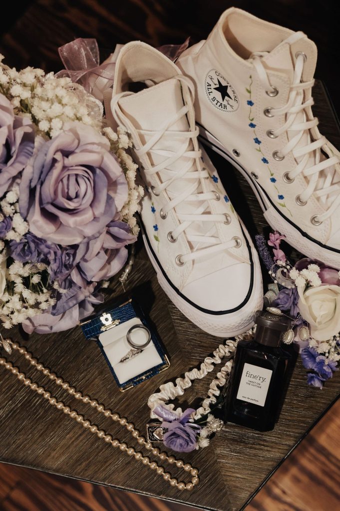 The reception was inspired by a palette of creamy neutrals, soft purples, and hints of evergreen—romantic and whimsical with a festive twist. The couple incorporated unique elements into their reception decor, creating a celebration that felt both personal and magical.