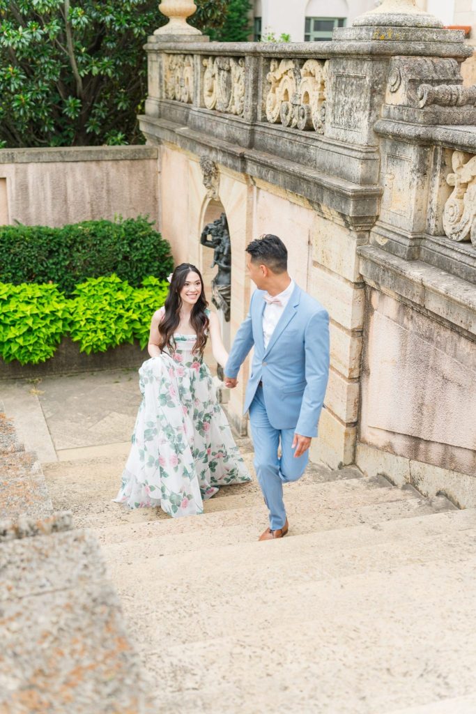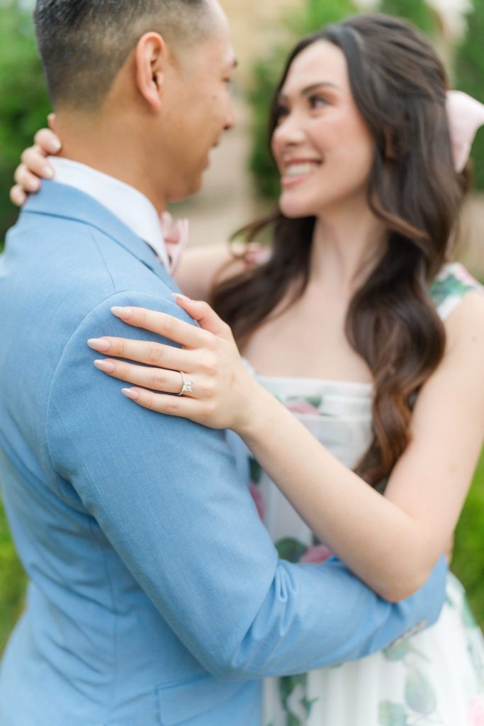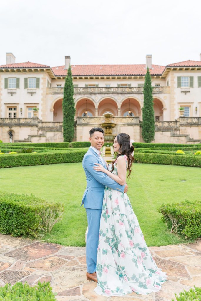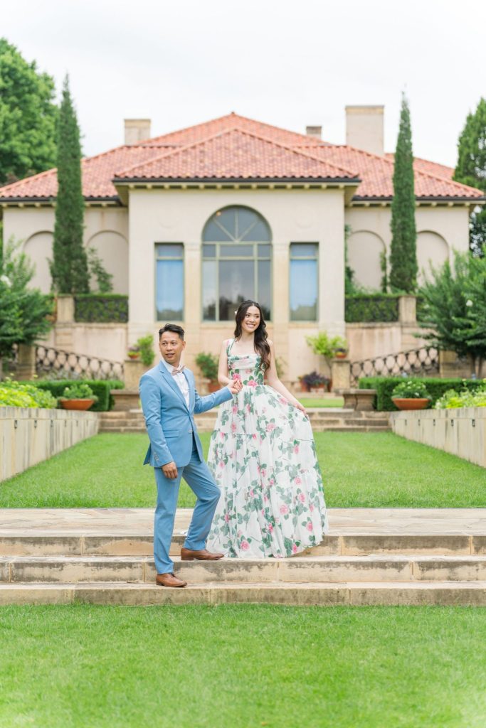 VU and LAN’s outdoor engagement at the Philbrook Museum of Art was a breathtaking celebration of their love against a backdrop of nature’s finest. Set amidst the museum’s stunning gardens and lush landscapes, the couple’s engagement session exuded a serene and romantic charm.