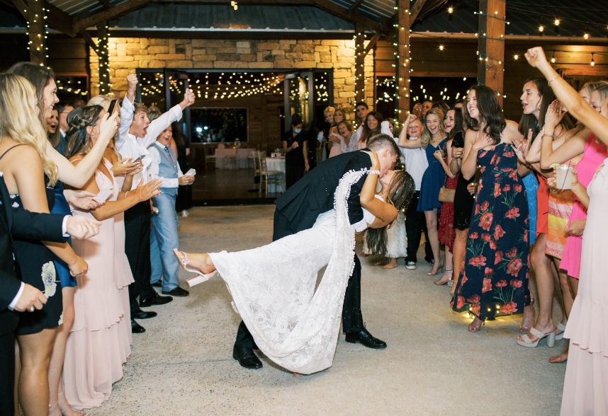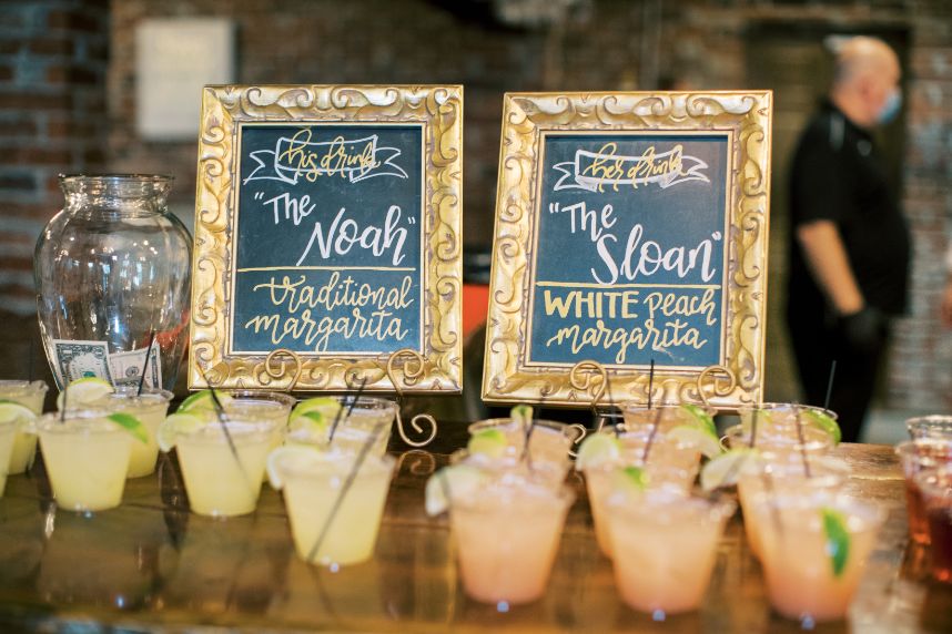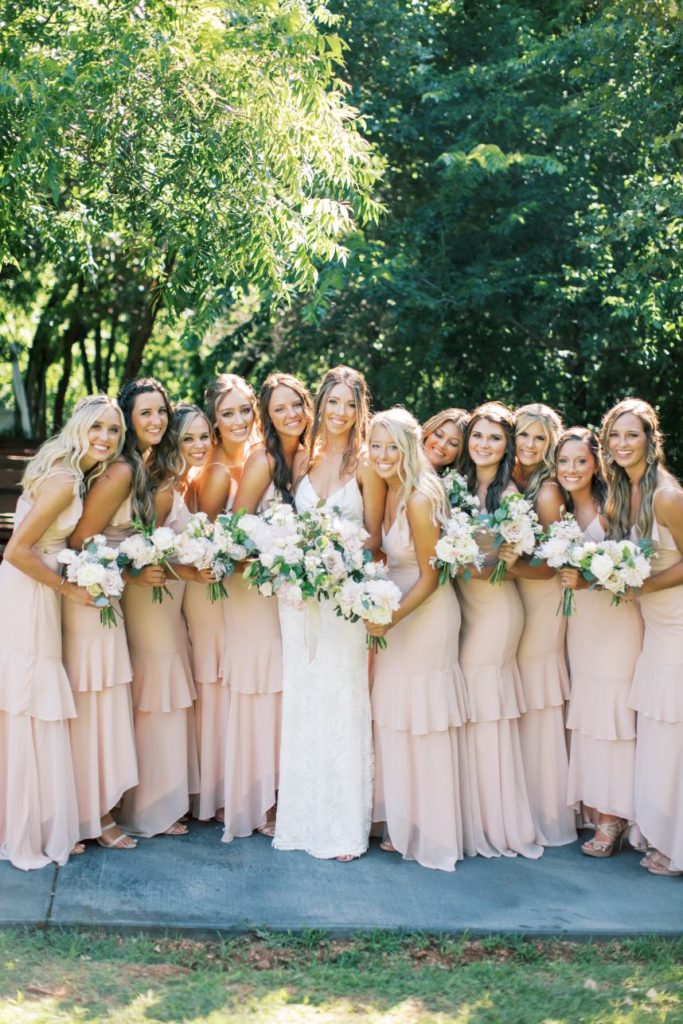 Classic wedding style meets trendy details in Sloan and Noah’s ethereal Southwind Hills wedding! Sloan looked absolutely gorgeous in her white gown with floral detailing, and her simple yet elegant makeup and hair accompanied it perfectly! We are obsessed with the matching blush pink bridesmaids dresses that add an eye-catching pop of color against all the greenery! Gold accents throughout bring a shimmery aspect to the decor, and we love the addition of personalized cocktails – how fun?! Carsyn Abrams Photography captured the light and airy feel of the wedding while incorporating all the little moments and details in such a beautiful way! To top off the night, the couple had a four-tiered white cake with delicate blush florals and a fun personalized topper with their names that looked oh-so-delicious! Cheers to Sloan and Noah!
