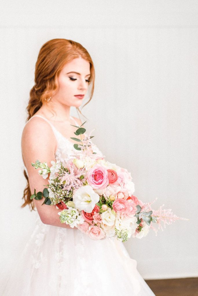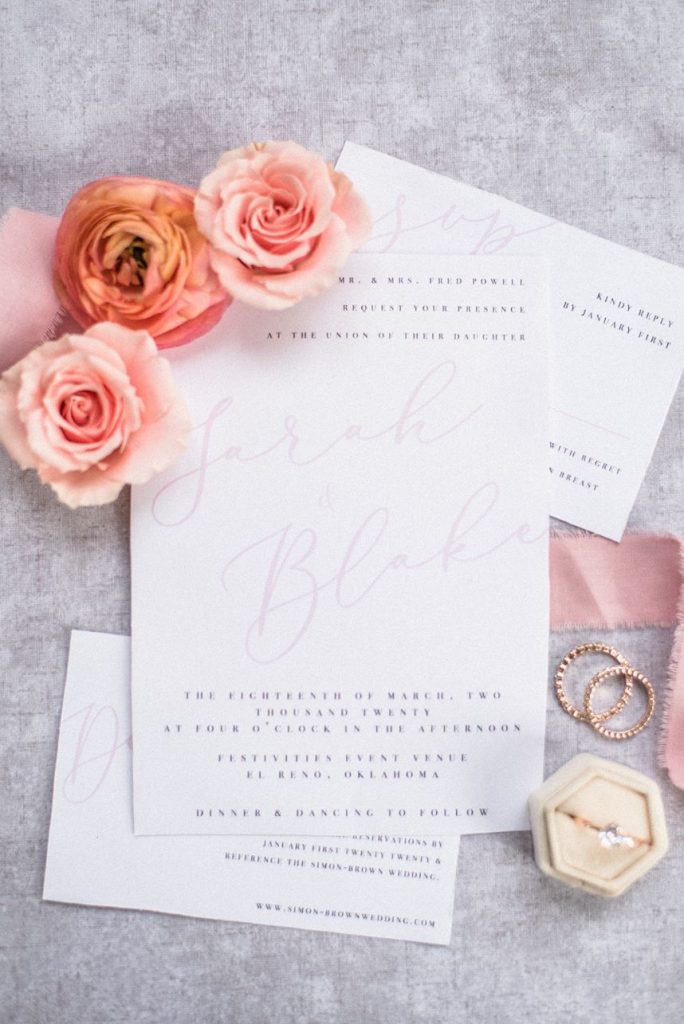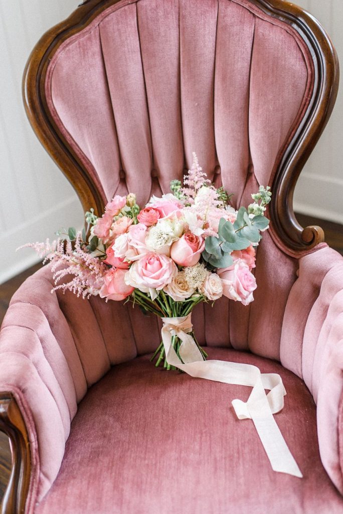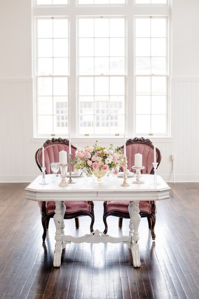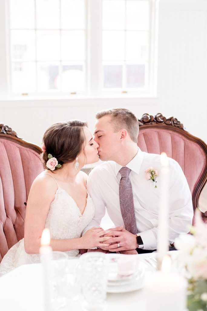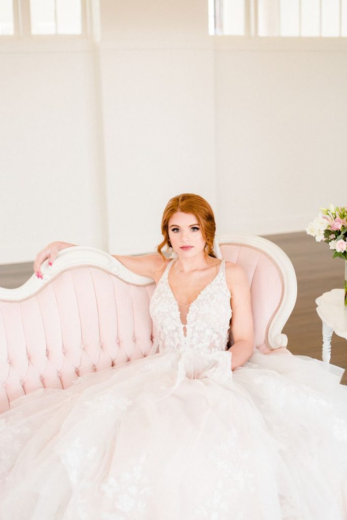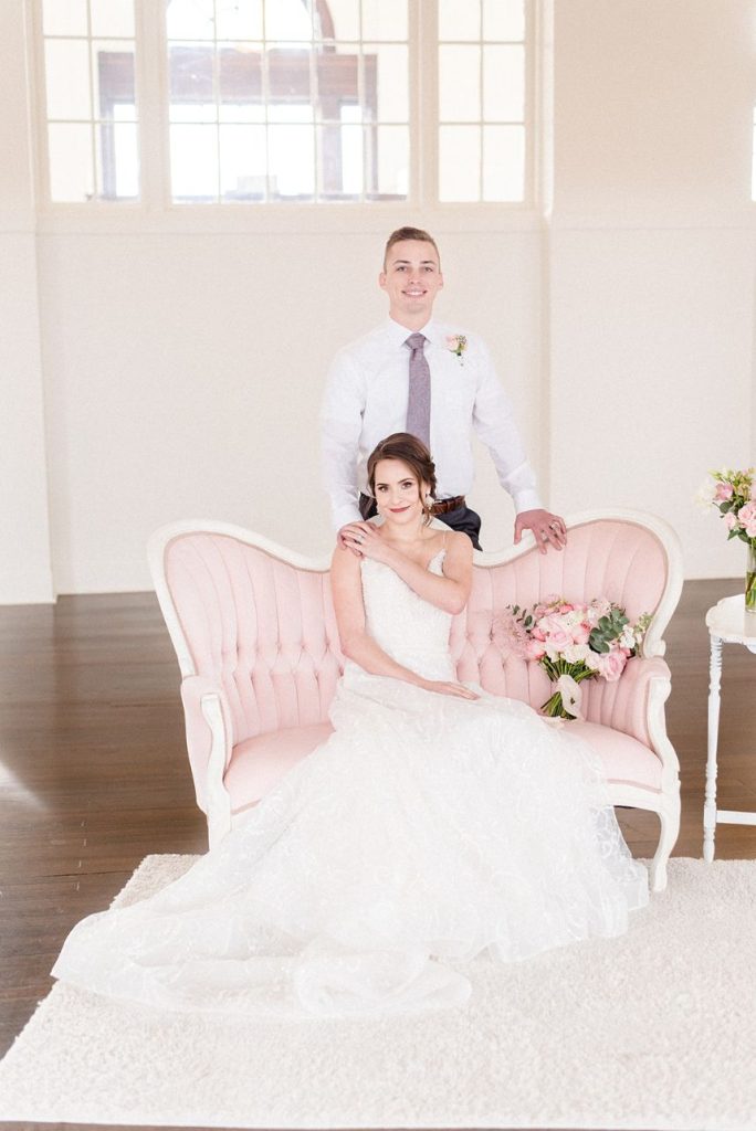 There are so many stunning elements throughout this ethereal wedding inspiration! Held at Festivities Event Center, this styled shoot features stunning complementary wedding scenes of blush and mauve as well as two different brides – each showcasing absolutely gorgeous artistry and styling in beautiful settings. The historic two-story, Georgian-style venue located in the heart of downtown El Reno serves as a modern, fresh space for weddings and events. Lovely whitewashed decór and rentals from Borrowed & Bleu Co. elevate the atmosphere and rose-colored crystal on a dusty periwinkle tablescape is the cherry on top! We wish we could sneak a bite of this four-tiered floral-adorned dream of a wedding cake, carefully created by Allie’s Baking Boutique. Our favorite part of this ethereal wedding inspiration is the perfect pink velvet settee featured in this gallery! Cheers!