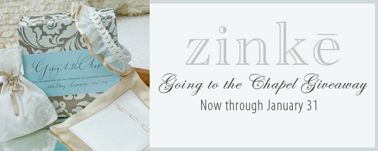Zinke Design is giving away two Going to the Chapel gift sets! The way to win is simple, all you have to do is be their friend. Check out the ZINKE and ZINKE DESIGN Facebook pages and click “like.” If you are already a fan, but know of a friend getting married then pass along the good news. This is also a great win if you’re a bridesmaid, what bride wouldn’t love to receive one of these as a gift! The gift set retails at $52.00 and all of the pieces are made of the finest silk and linen. The set includes a hankie, ring bag and garter. Hurry and click the “like” button, the give away ends Monday, January, 31!