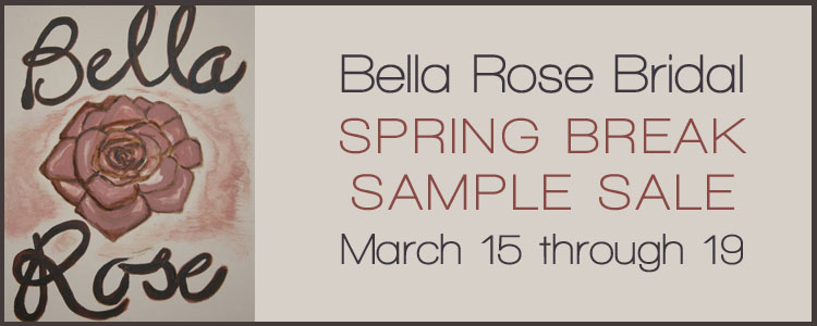 Whether or not your off this week for Spring Break, be sure to swing into Bella Rose Bridal for their Spring Break Sample Sale starting tomorrow! Select designer gowns will be 30 to 70% off! The sale ends Saturday, March 19. No appointment necessary!