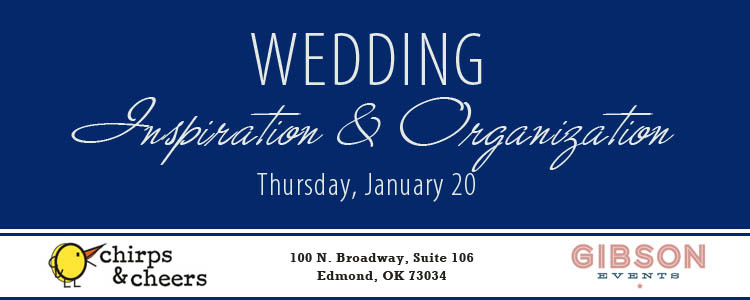 Chirps and Cheers will be hosting a night of “Wedding Inspiration and Organization” featuring Lindsay Gibson of Gibson Events! Learn Lindsay’s tips and tricks while she helps you create your very own inspiration board. Whether you’re planning a wedding, party or just want to get creative, call 405.509.6336 to join in on the fun this Thursday! Spaces are still available!