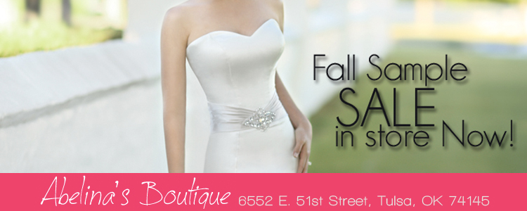 Hurry in to Abelina’s Bridal Boutique in Tulsa for their Fall Sample Sale going on now! From simple and elegant to bold and daring, Kristine has something for everyone. Shop early for the best selections!