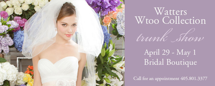 Make plans to attend the WTOO Trunk Show April 29 through May 1, this weekend, at Bridal Boutique in Norman. You won’t want to miss this fabulous collection of gorgeous gowns! With whimsical styles and sleek dresses you’re sure to find your perfect gown! For an appointment, call 405.801.3377. Enjoy!