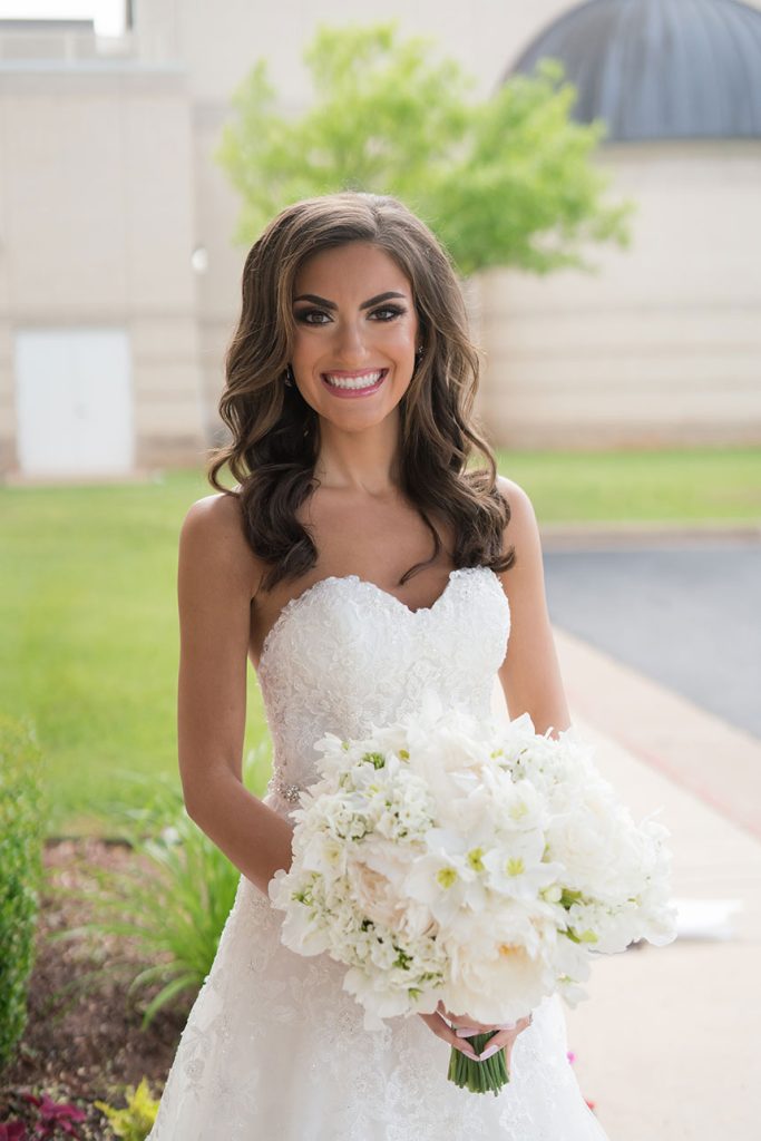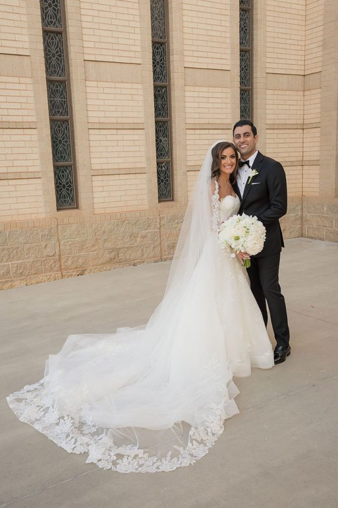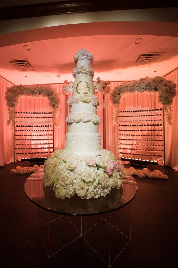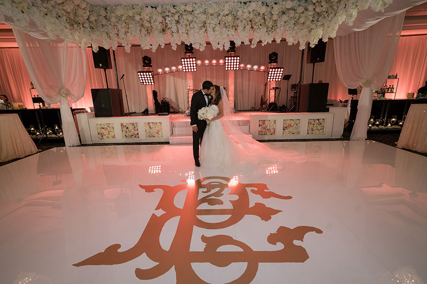 The Fleuriste knocked it out of the park again with these incredible wedding florals! Erika Kouri and Dr. Paul Shadid’s fairytale inspired wedding was classically gorgeous with traditional details like luxe all-white florals, a towering white wedding cake from Amy Cakes, and plenty of sparkle! You absolutely must see the couple’s draped dance floor, complete with hanging roses and delphinium and a custom newlywed monogram printed on the flooring – it’s as if you’ve walked into a tented garden scene a la Cinderella. Enjoy perusing this oh-so-stunning wedding day!