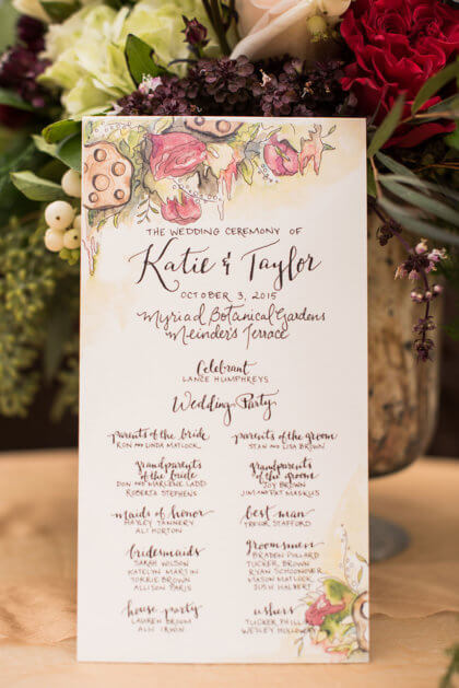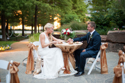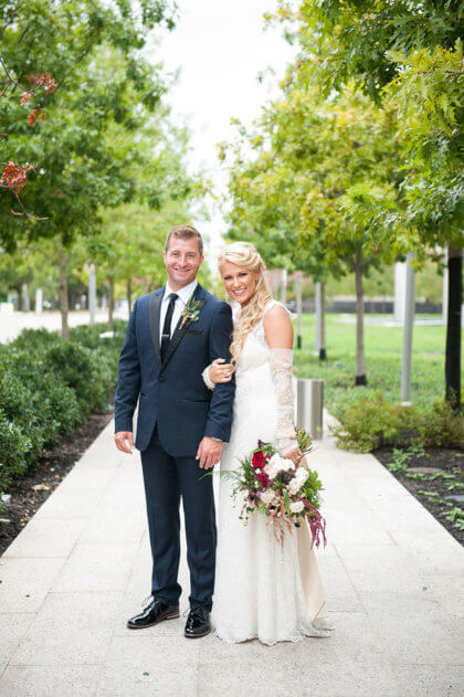 Katie and Taylor were married on October 3, 2015, at the Myriad Botanical Gardens. The couple celebrated by incorporating thoughtful details including hand-painted invitations, a custom-carved wine box and vintage family heirlooms. The couple said their favorite memory of the day was when they set aside time during the reception to sit and enjoy the food together. They loved sharing this special moment as it gave them a chance to talk and reflect on being married.