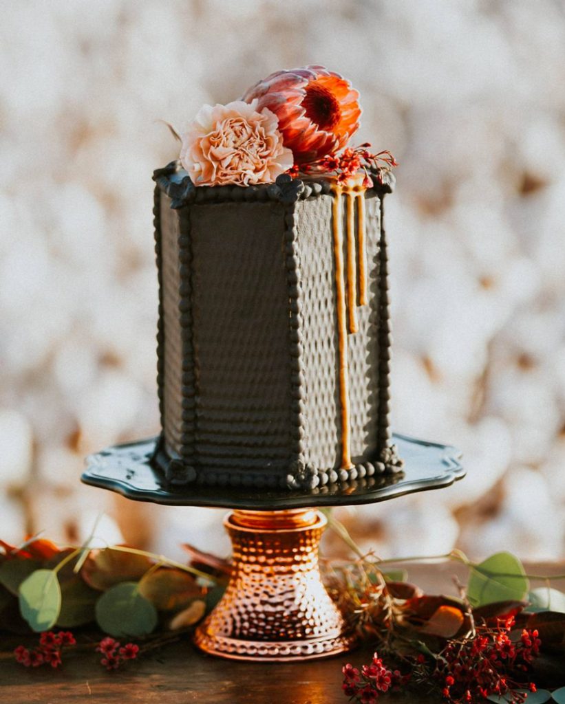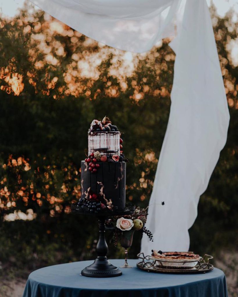 We are loving the dark and moody color schemes and how they make such a unique detail on a wedding day. These cakes are perfect for the bride who strays from the norm and wants to capture the fall essence.