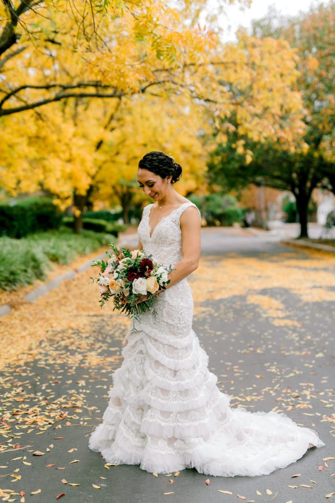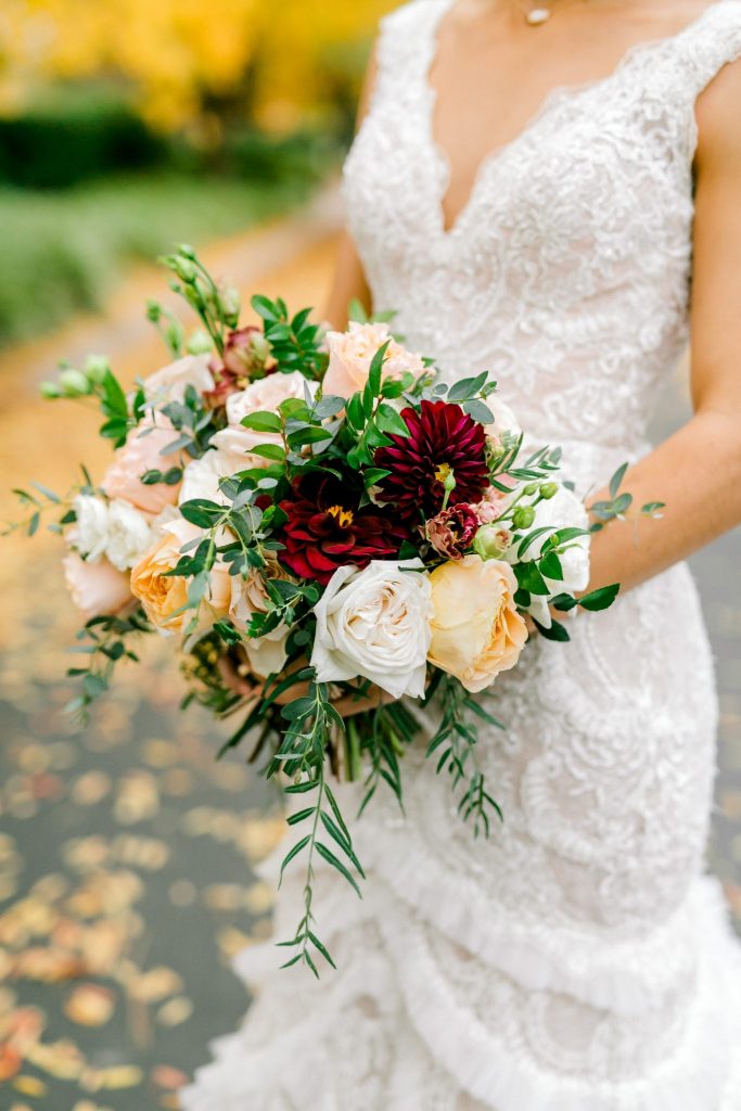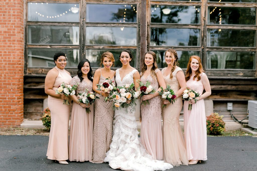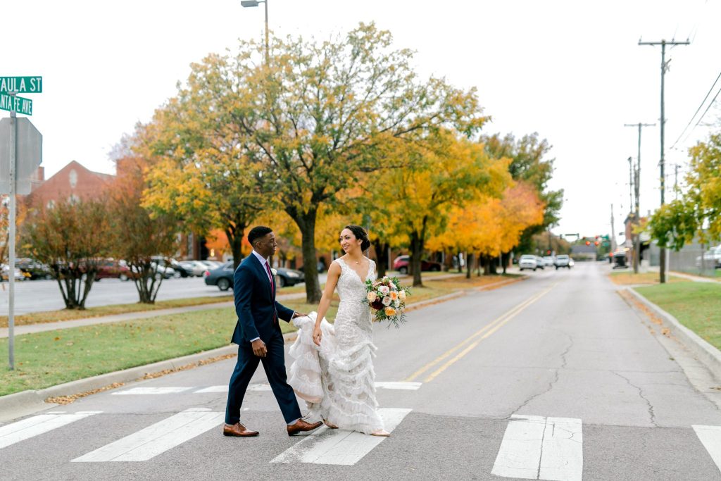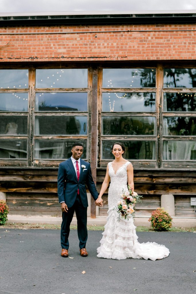 If you’ve been planning on having a fall wedding in Oklahoma, THIS is the wedding you need to see. Annie and Tre had all the important details secured with some of the best in the business. What better place to celebrate an autumn wedding than an industrial former rail house? The locale in Norman was the perfect place to party and enjoy the autumn evening, while Abbey Road Catering kept guests happy with an unbeatable cuisine – as well as fabulous drinks! Beautiful flowers from Southwind Hills Floral included the perfect seasonal elements and hues. Captured in full, vibrant color by Emily Nicole Photo, Annie and Tre’s fall soiree will be one we’ll never forget! We’ll never forget the sweet photo of them dancing together, either! Scroll below to see this fall warehouse wedding!