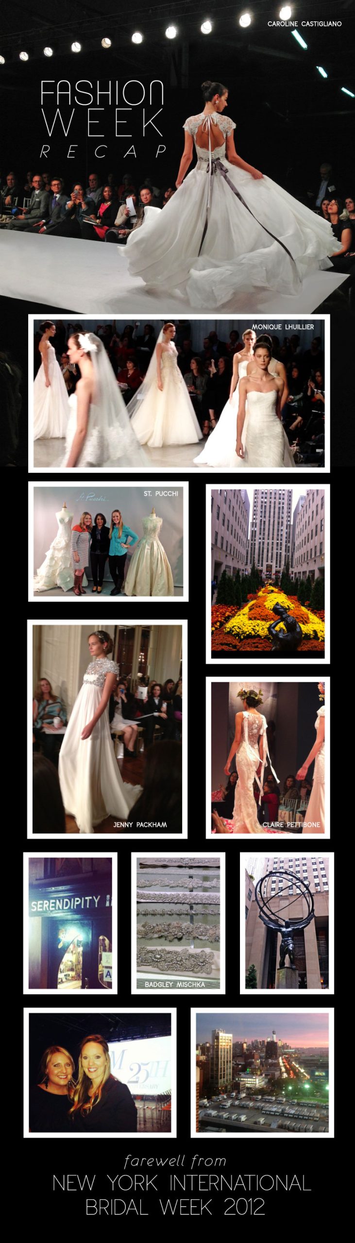 We are back from our fabulous trip to the “city that never sleeps” (so true!), and absolutely can’t wait to share more of the latest trends hot off the runway for 2013! We loved seeing new collections from Douglas Hannant, Marchesa, Anne Barge, St. Pucchi, Claire Pettibone, Jim Hjelm, Romona Keveza, Christos, Matthew Christopher and so many others. Of course, no trip to NYC would be complete without a little sightseeing, shopping and fabulous dining. We had an incredible week mingling with many of the industry’s top designers, and we truly appreciate their dedication to making every bride’s fashion dreams come true! We already can’t wait for next year!
