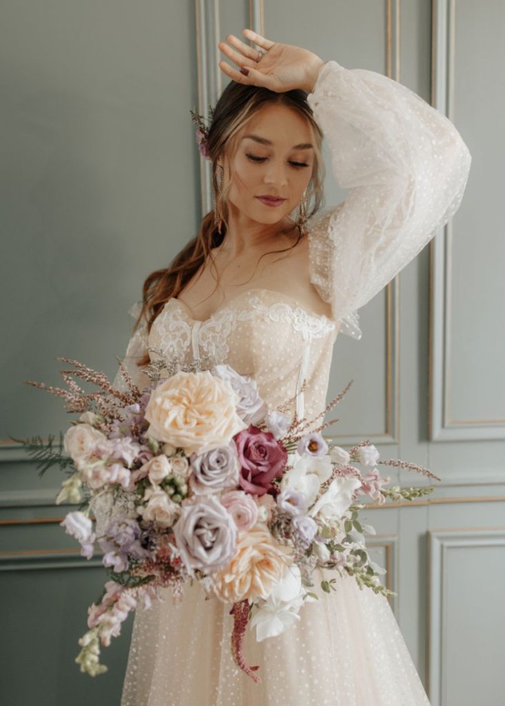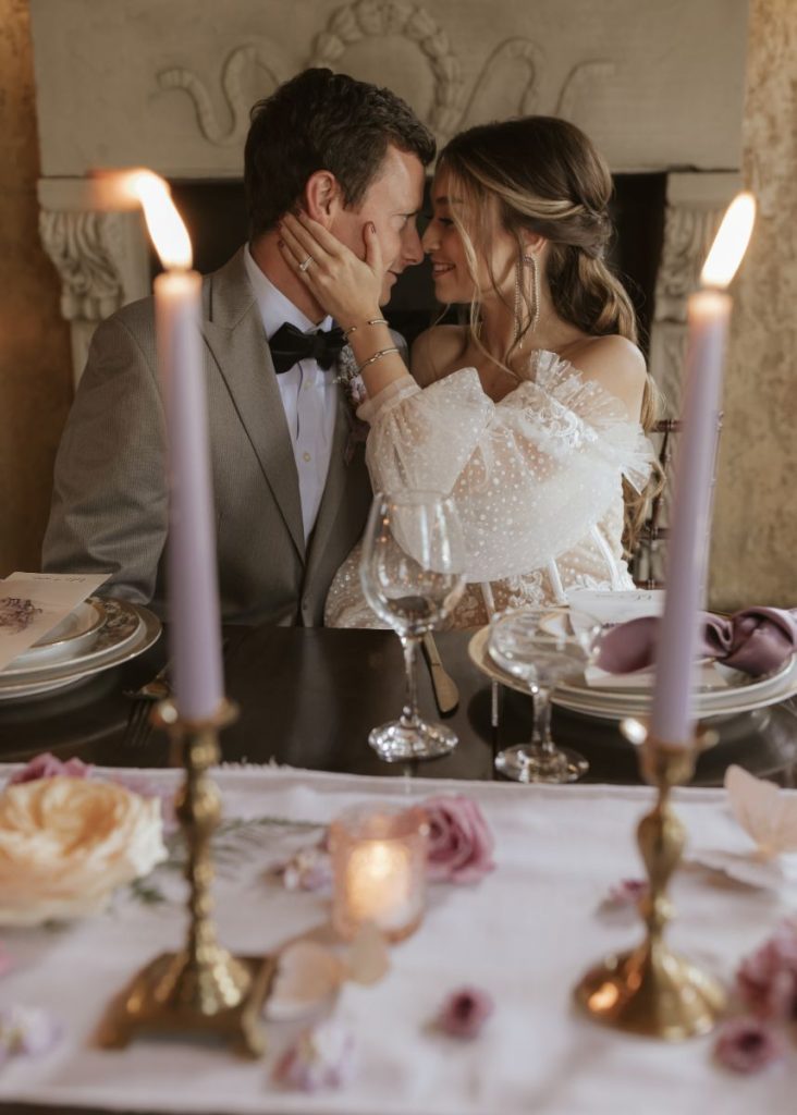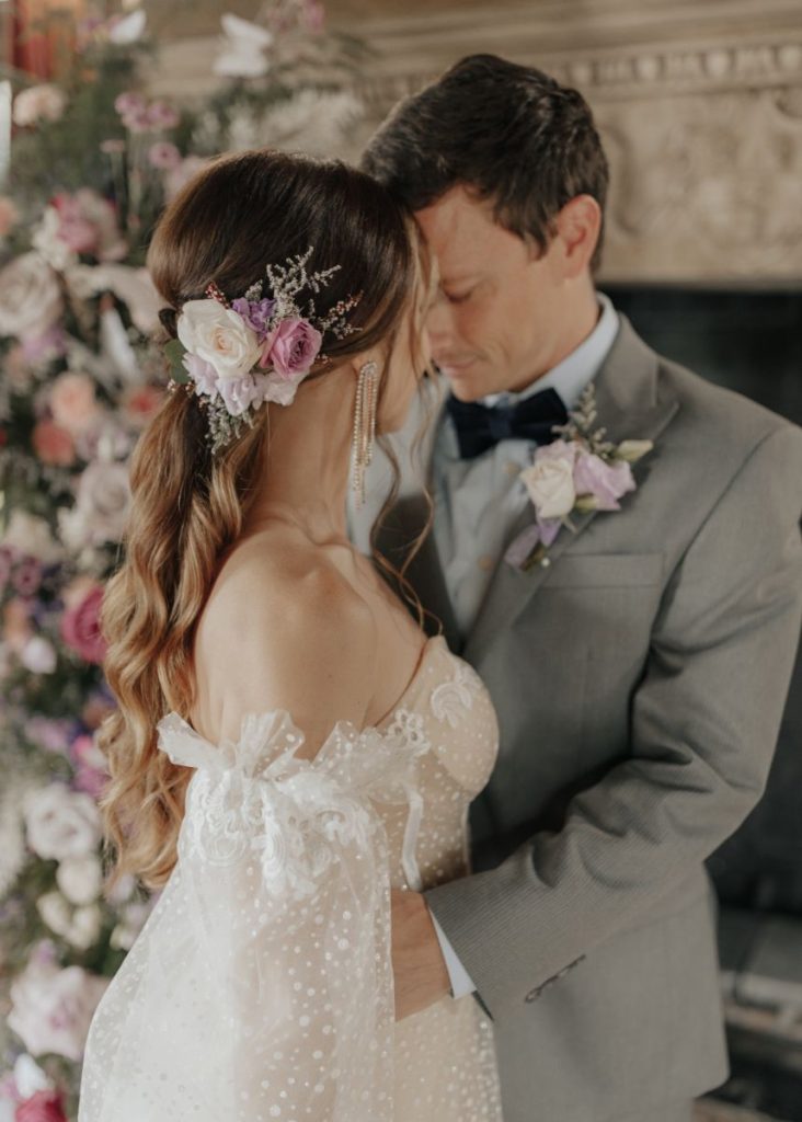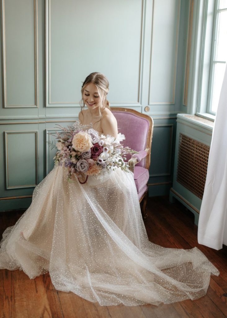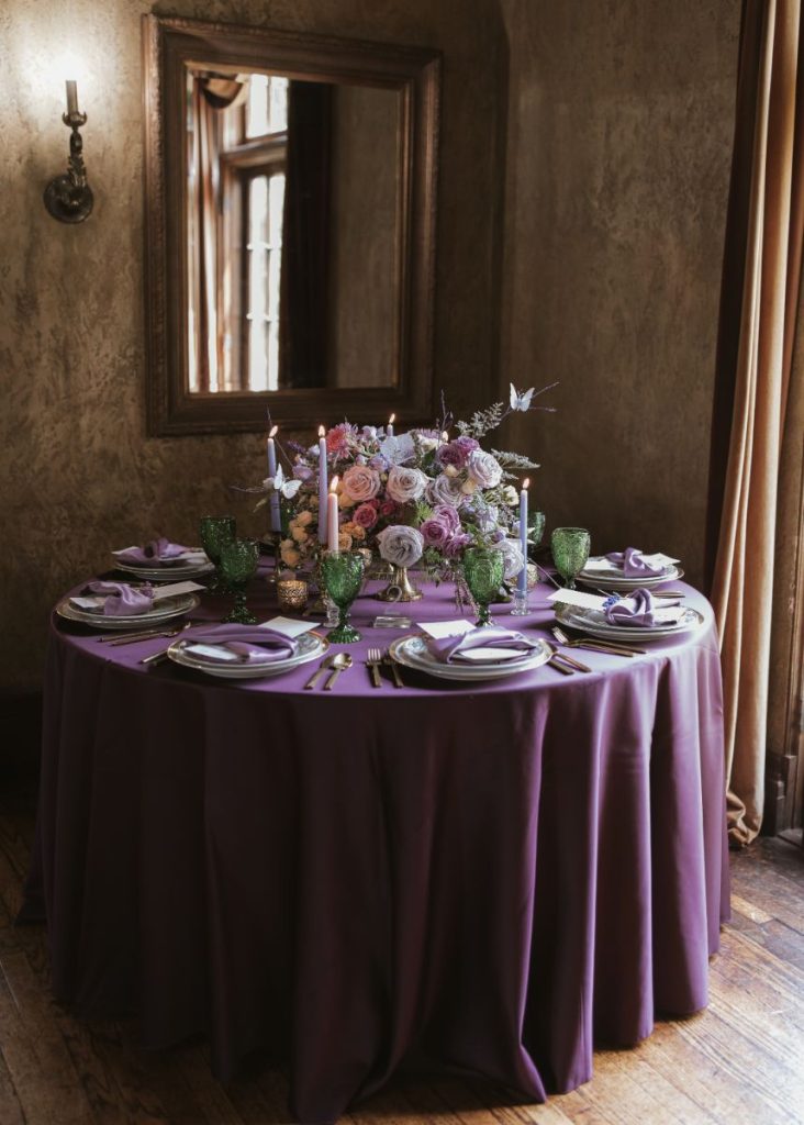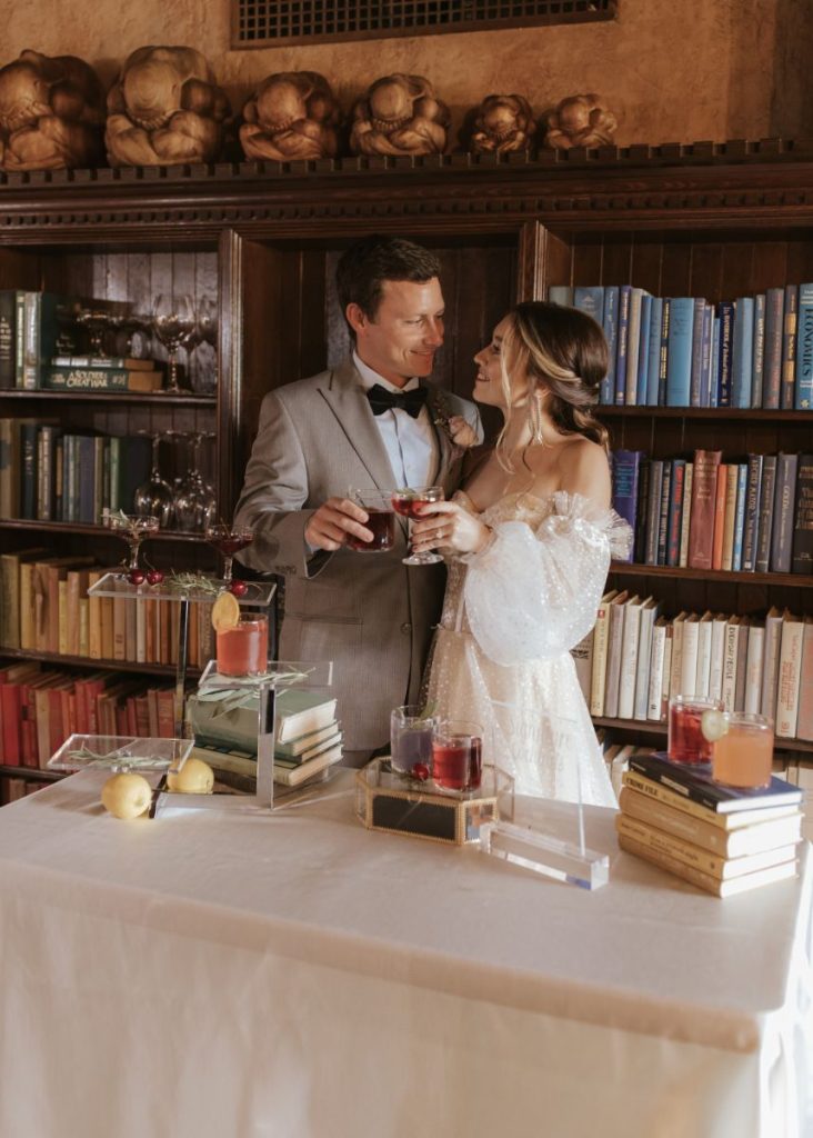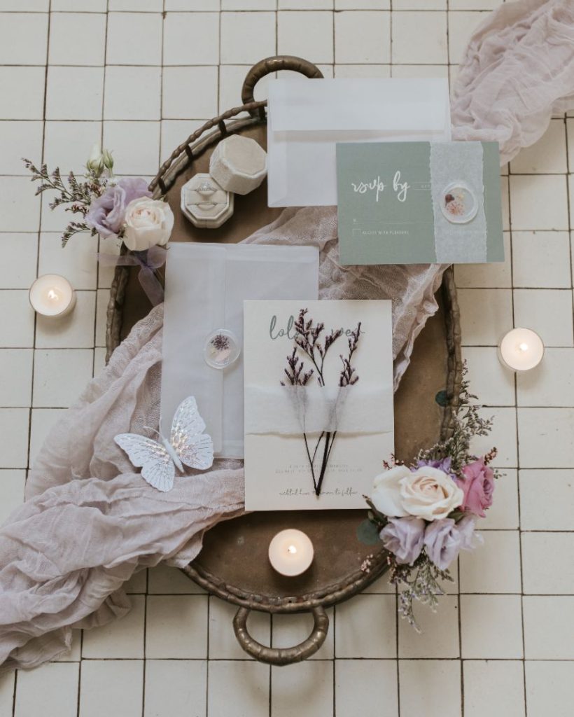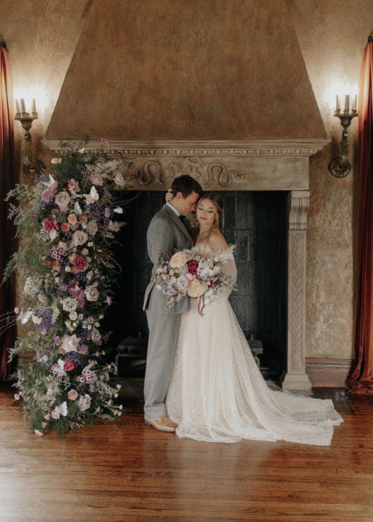 We thought we were used to dreamy local content by now, but this fine art fairytale wedding inspiration has taken our obsession to the next level! Lilac and lavender combine in a delicate pastel palette simply made for celebrating your picture-perfect love. The moody and historic venue was a surprisingly perfect backdrop for this styled shoot filled with whimsical details like butterfly accents and fresh buds nestled into paperie for an extra artisanal touch of romance. The blooms don’t stop there, though! A showstopping fireplace floral installation from The Flower Shop Pryor warms us up plenty, and an artful floral table runner is the perfect alternative to centerpieces. Our gorgeous bride and groom model in intimate scenes around the mansion setting where antique brass rentals from Party Pro Rents contrast with modern acrylic décor used for signage. Academia and alchemy combine in a bar set-up by Blue Label Bartending in this mansion library complete with craft cocktails garnished with fresh herbs. Between signature sips and a pressed petal cake design by Sweet Devotion Cakery with watercolor-like details in three decadent tiers, we don’t know which we’d like to try more! Decide for yourself with the fine art fairytale wedding inspiration below. Cheers!