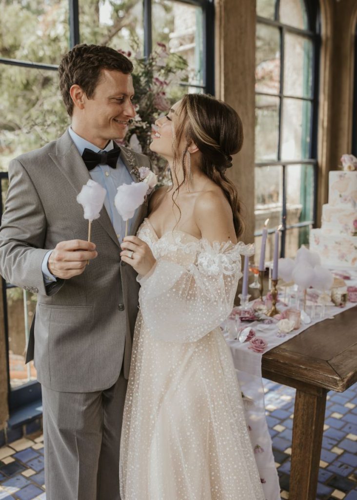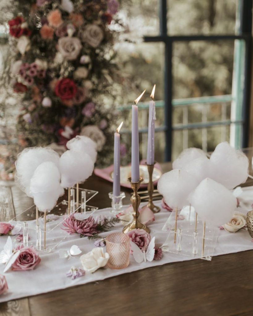 From the photographer: “We really just wanted a pastel fairytale vibe for this shoot, and it came together so perfectly. I am in love with the floral table runner, a great alternative to a wedding centerpiece!”