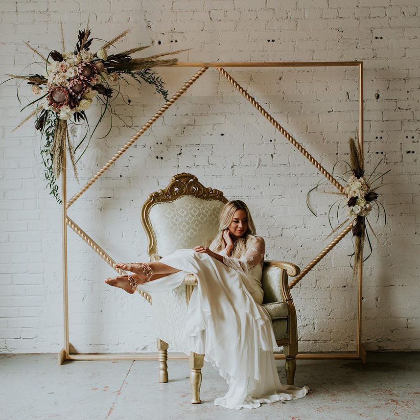 Making a statement in a big way, our final must-see trend, geometric altars, are making their way through local Oklahoma weddings one sweet ceremony at a time. With backdrops ranging from round to sculptural and everything in between, its no wonder brides are opting for this unique decor piece. This stunning gold backdrop from Runaway Belle Vintage Rentals is easily one of our new faves! This vintage rentals company’s goal is to be different and original, thus their every-growing inventory is keeping brides constantly ahead of the trend.