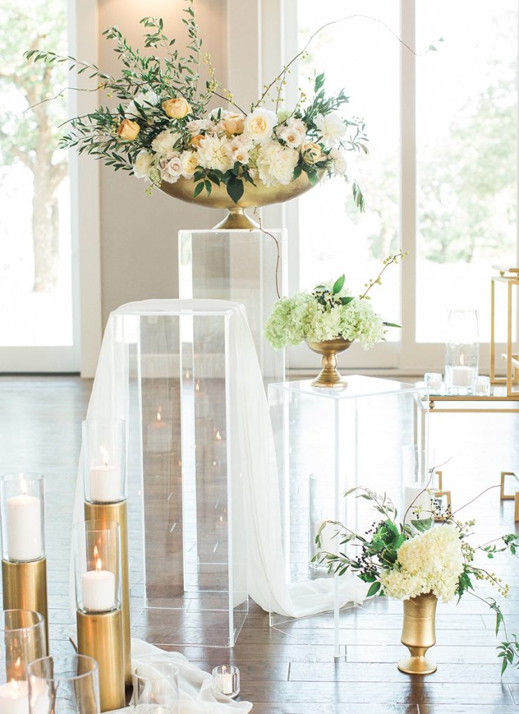 It truly doesn’t get any more chic than acrylic detail. From chairs, to tables, to these fabulous pedestals from Marianne’s, this decor trend will fit any bride’s style! We’re loving the au naturale look shown above, but can easily see acrylic playing a part in your over-the-top ballroom wedding, as well. Marianne’s has been Oklahoma’s choice for the finest in event rentals for over 30 years. Offering a wide variety of inventory ranging from tables, chairs, linens, china, flatware, glassware, table decor, furniture and more – Marianne’s is your one-stop shop for all of your rental needs!