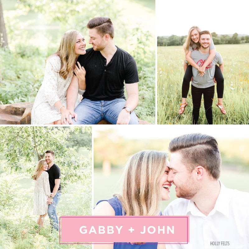 Gabby and John were seniors in college and about to graduate. She was convinced that it was not going to happen before graduation. John asked to take some senior pictures together so they could always remember their senior year. They picked out their outfits and had a talented friend take some shots. They went out to a bench by a lake that meant a lot to them, and he got down on one knee while they were “posing” for a further away shot. John couldn’t even get through everything he planned to say because he was tearing up. Saying yes to something had never been so easy for Gabby, with the exception that she could hardly breathe! After they were in the car about to head back to her house (where their families and friends were waiting to celebrate), he pulled out letters that their parents had written for them to read after he proposed. It was the most thought out, love-filled day of their entire lives.