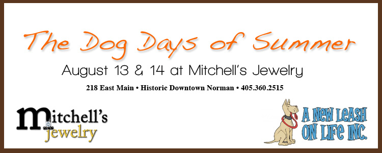 We are suckers for a good cause — especially when it comes to animals! So although this is not really wedding related, we just had to share this event! Beginning this Friday, August 13 through Saturday, August 14, stop by Mitchell’s Jewelry in Norman for The Dog Days of Summer Special Event. A percentage of all sales during the Dog Days of Summer will go to A New Leash On Life — a very worthy organization! You’ll definitely want to check out the Best In Show collection while you’re there. Bring your pups to share in the fun! If you’re thinking about including your pooch in your wedding ceremony, this might be the perfect opportunity to bedazzle them! You can also pick up dog tags and charms — engraving is free! Free pet portraits by a local artist will take place Friday the 13th from 4 to 7 pm and Saturday the 15th from 1 to 4 pm. This might also be the perfect time to look for some bling to add to your wedding attire! Enjoy the Dog Days of Summer!