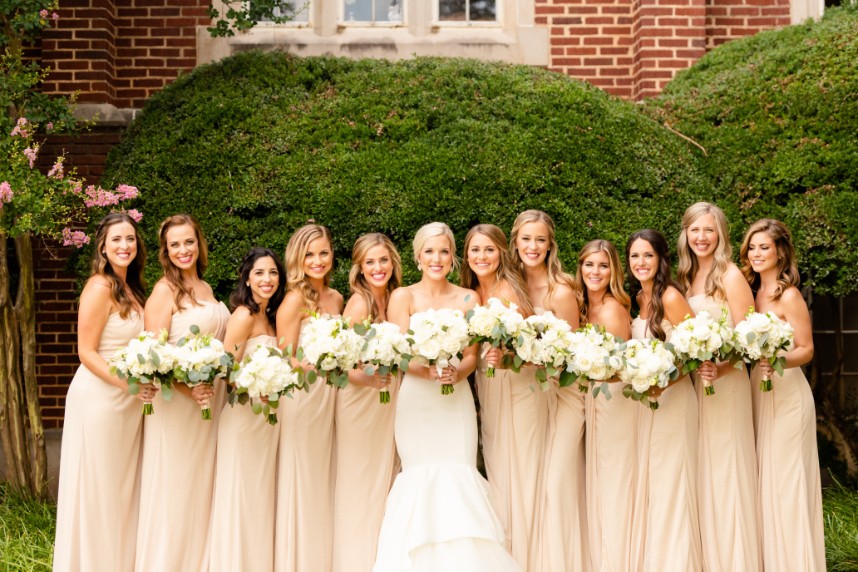 Sixth grade sweethearts Jessica and Cole had the glam ballroom wedding of their dreams captured by Oklahoma photographer Holly Gannett. It was a a beautiful reception filled with classic white florals from Trochta’s Flowers and Garden Center, and the bridesmaids’ bouquets especially popped against the gorgeous lovely gowns from Prim! Cheers to Jessica and Cole – wishing you a lifetime of love and happiness!