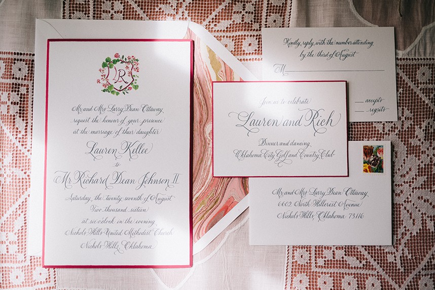 Lauren and Rich’s glam country club wedding features just about everything we love – a luxe color palette, over-the-top florals and whimsical details just to name a few! Over a romantic dinner one evening Rich proposed with a gorgeous sparkler from Lewis Jewelers. The wedding planning began shortly after with the help of planner extraordinaire Judy Lehmbeck, and the lovely invites from No Regrets were sent to over 300 family and friends. When the big day arrived in late summer, the sweet couple exchanged rings from BC Clark Jewelers and headed to their reception which was nothing short of stunning! The ballroom looked like a summer garden party with florals from Trochta’s and rentals from Marianne’s and Mood Party Rentals. The blushing bride was radiant with hair and makeup by Malorie Avaline – Beauty Unveiled and her maids were picture perfect in gowns from Prim. Brown Egg Bakery crafted a delicious wedding cake, and guests were treated to late night Taco Bell before the couple said goodnight – how fun! Thanks to Josh McCullock for capturing every lovely detail, and cheers to Lauren and Rich! See more of their exclusive Vows that Wow Oklahoma wedding on pages 60 – 65 of the all new 10th Anniversary issue. Cheers!