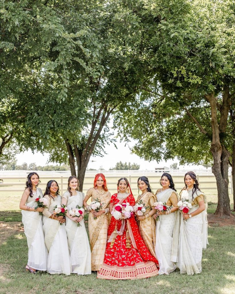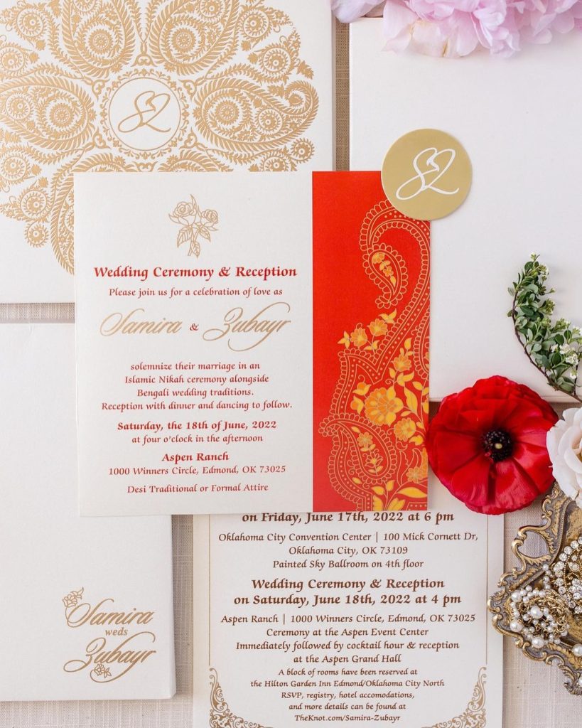 “My husband and I are Bangladeshi American and we made sure to incorporate our culture every step of the way. We traveled to Bangladesh and India before the wedding to find our wedding outfits, as well as traditional saris and kurtas for all 400 guests to wear to our pre-wedding event. It was so special to have our friends embrace our culture and participate in the traditional clothing and dance performances.” – Samira + Zubayr